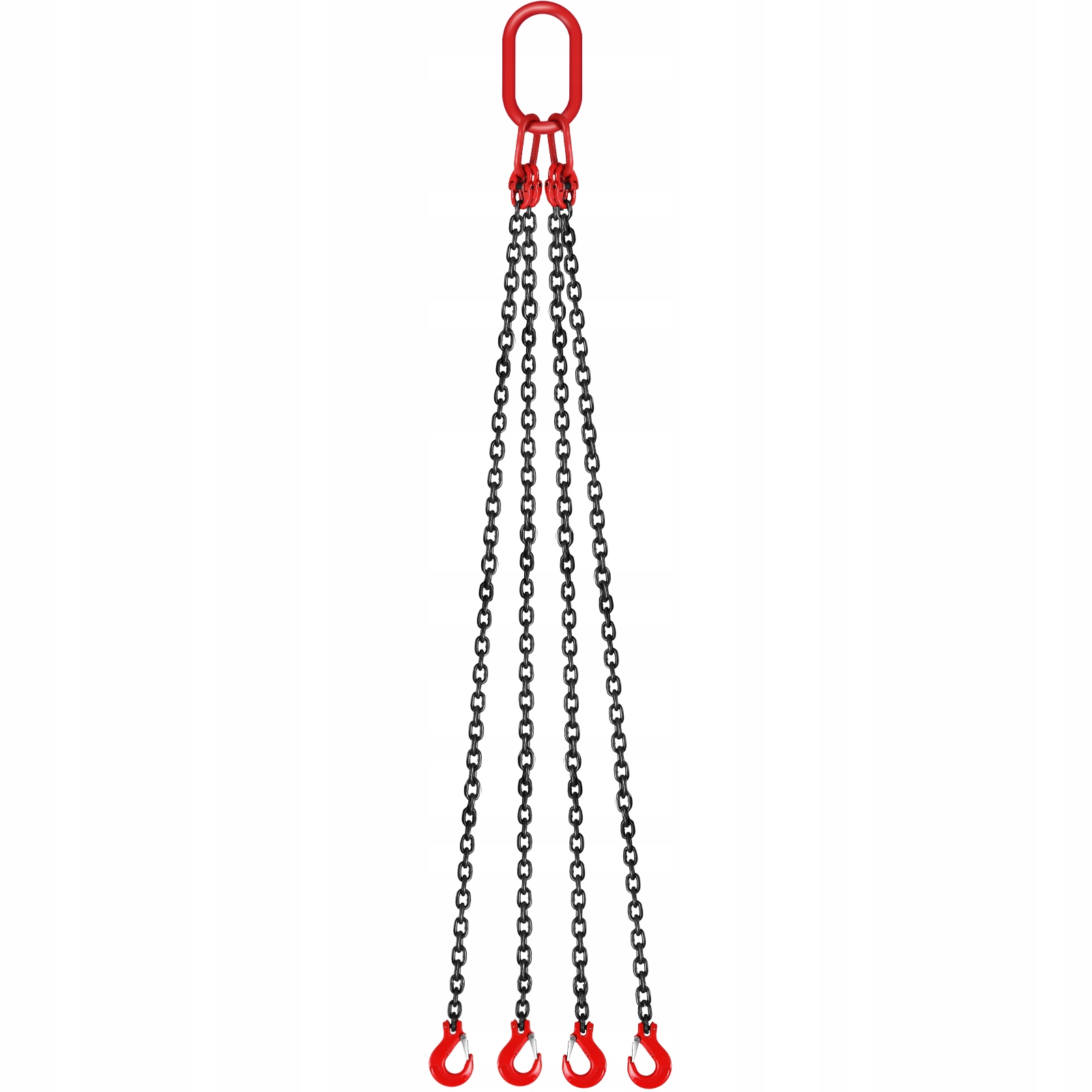 Этот четырехногий цепной строп изготовлен из стали G80 Mn и крюка из легированной стали с порошковым покрытием, который не смещается под нагрузкой. Это результат и эффект того, что обеспечивает доставку, что является результатом эффективности труда.
