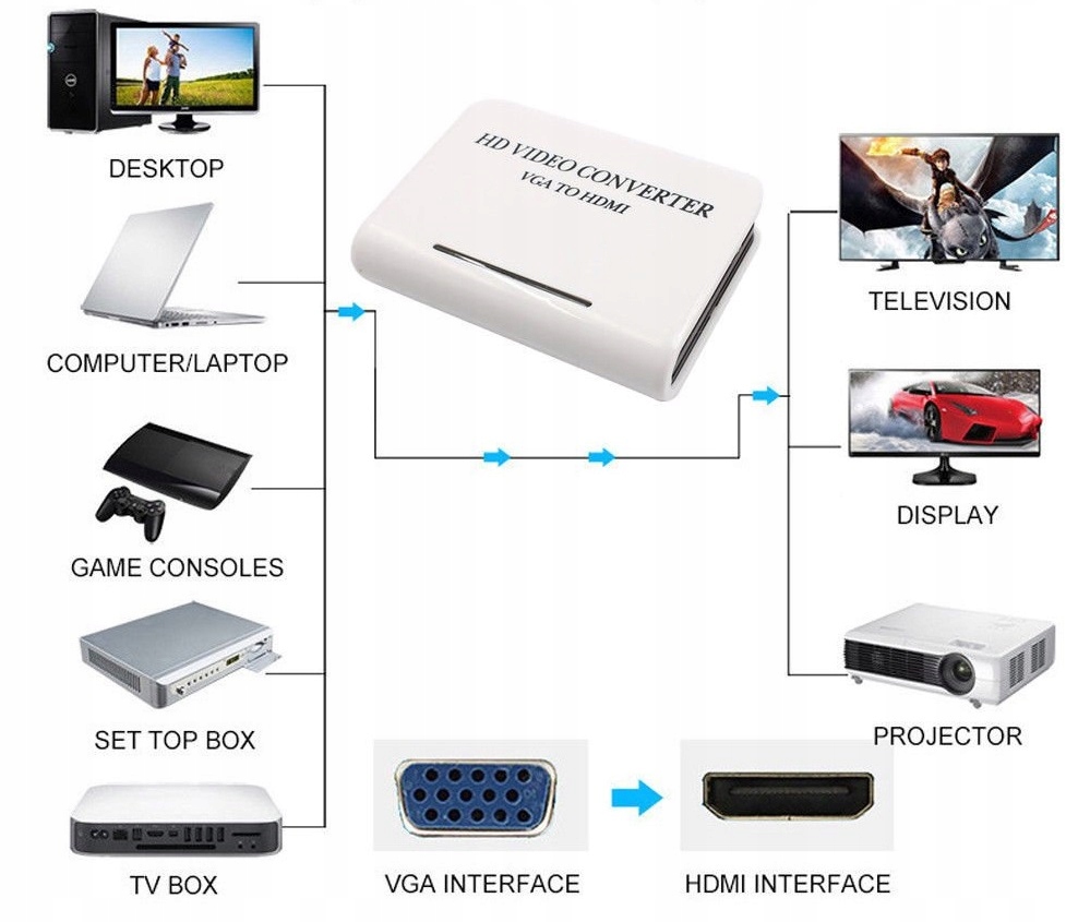 ПРИМЕЧАНИЕ. Представленный продукт-это аналого-цифровой конвертер, который работает, в отличие от кабелей VGA-HDMI. Обычный кабель не будет работать - устройства, которые также будут иметь цифровой сигнал в разъеме VGA, неслыханные