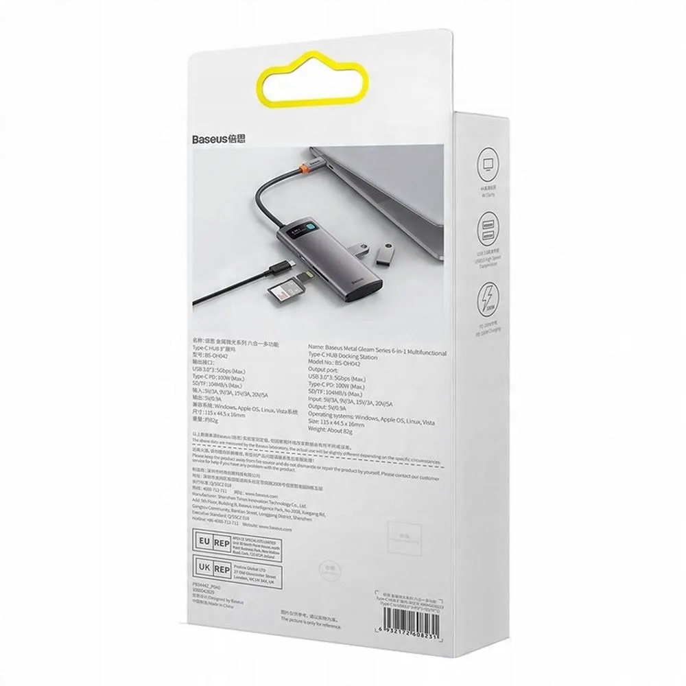 Многофункциональный концентратор Baseus Metal Gleam Series 6in1 — это устройство, которое можно использовать для преобразования одного порта USB-C в шесть портов. Работает с ноутбуками, компьютерами, планшетами, смартфонами.