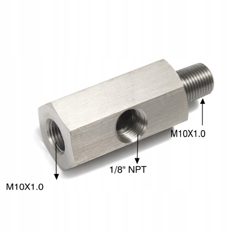 Универсальный переходник 1/8NPT - M10 для вкручивания вместо оригинального датчика давления масла для подключения источника турбомасла или вторичного манометра с резьбой 1/8" NPT. Описание входов видно на последнем фото.