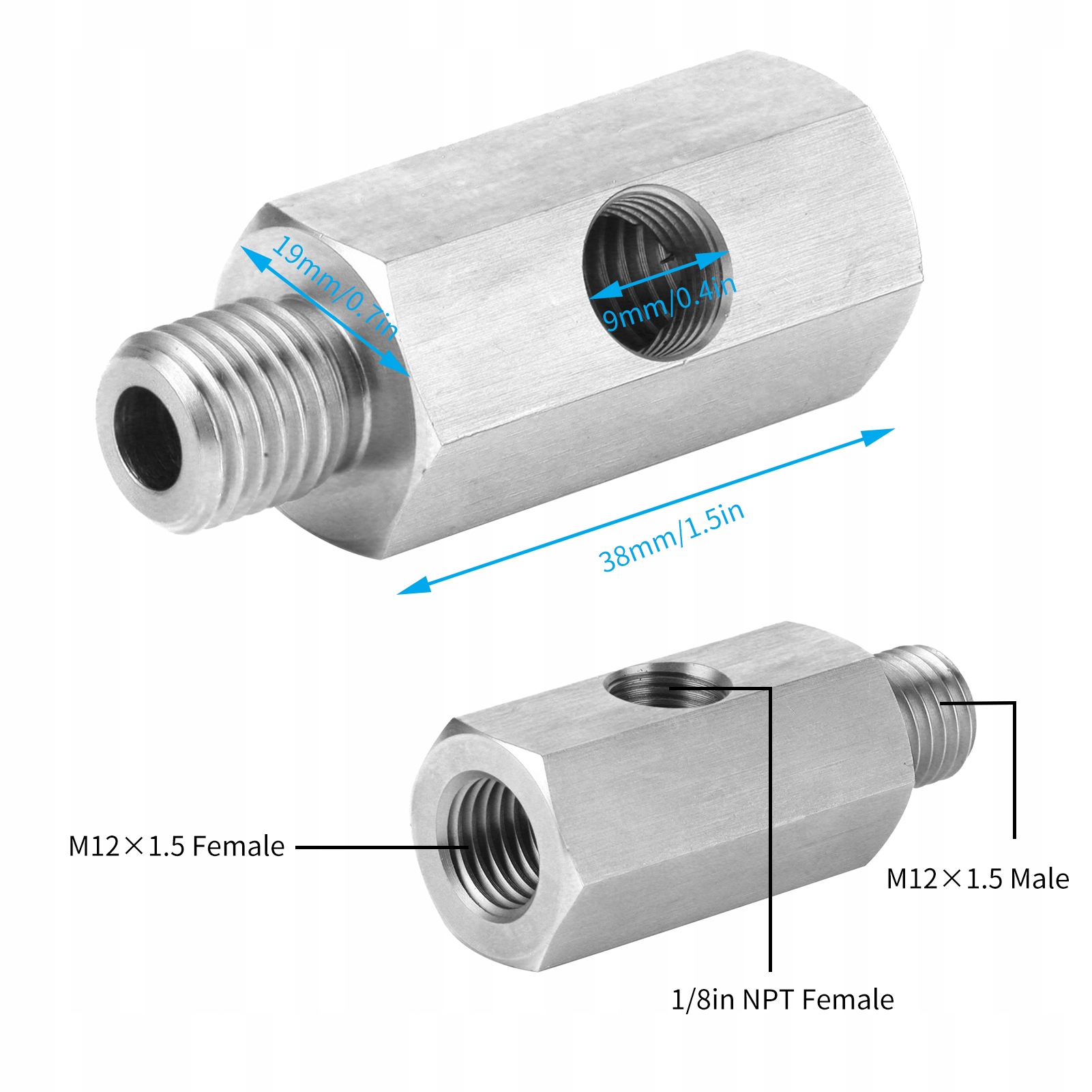 2. Этот удобный аксессуар позволяет подключить нестандартный датчик с резьбой NPT 1/8 дюйма и обеспечивает более распространенное выходное отверстие с резьбой NPT 1/8 дюйма для линии подачи масла турбины или манометра для ремонта автомобилей.