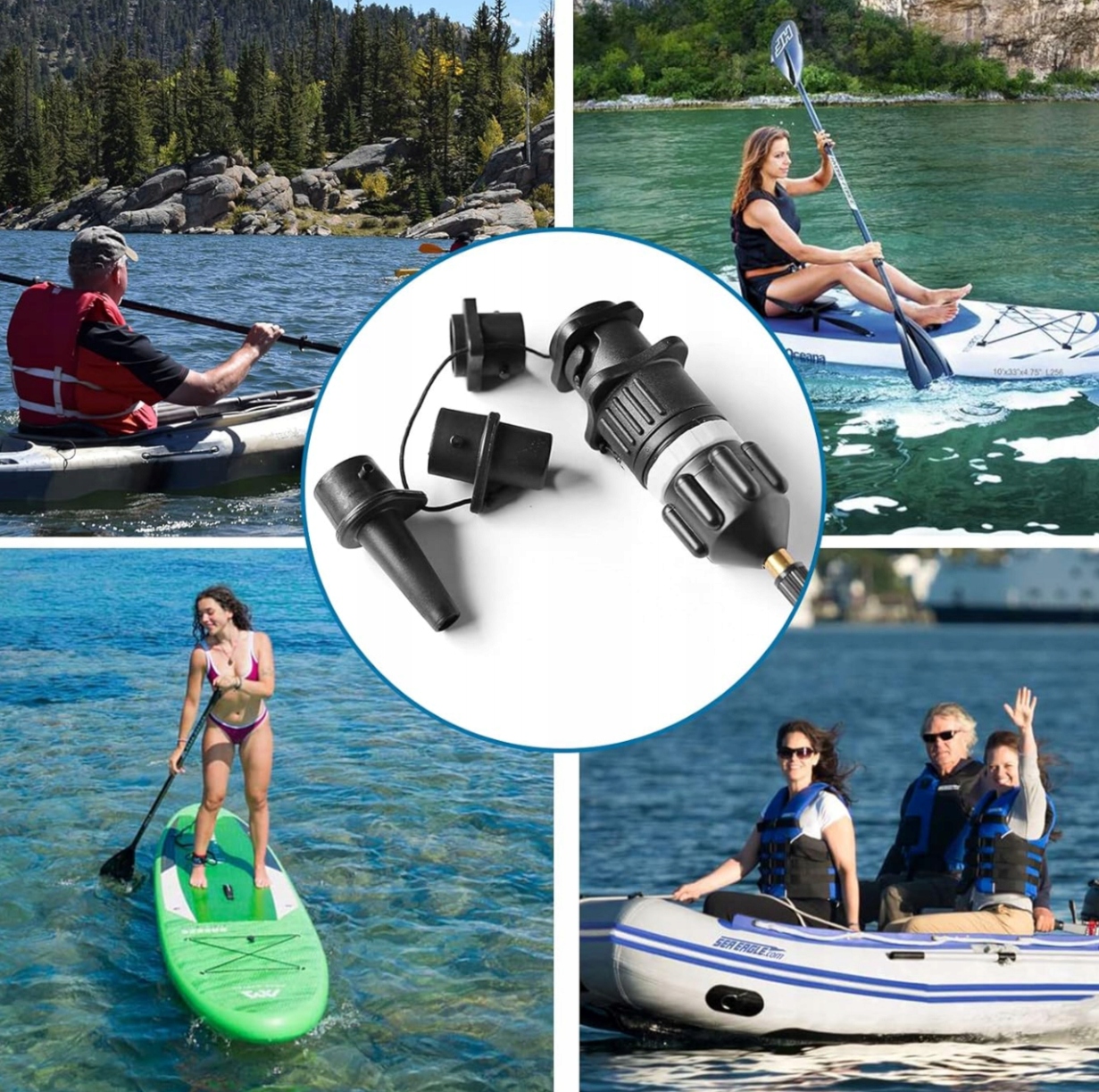 Профессиональный набор адаптеров для быстрого и беспроблемного надувания SUP-досок, каяков и другого надувного оборудования! Благодаря 6 элементам в комплекте вы сможете подключить насос к любому клапану – без напряжений и подсосов воздуха.