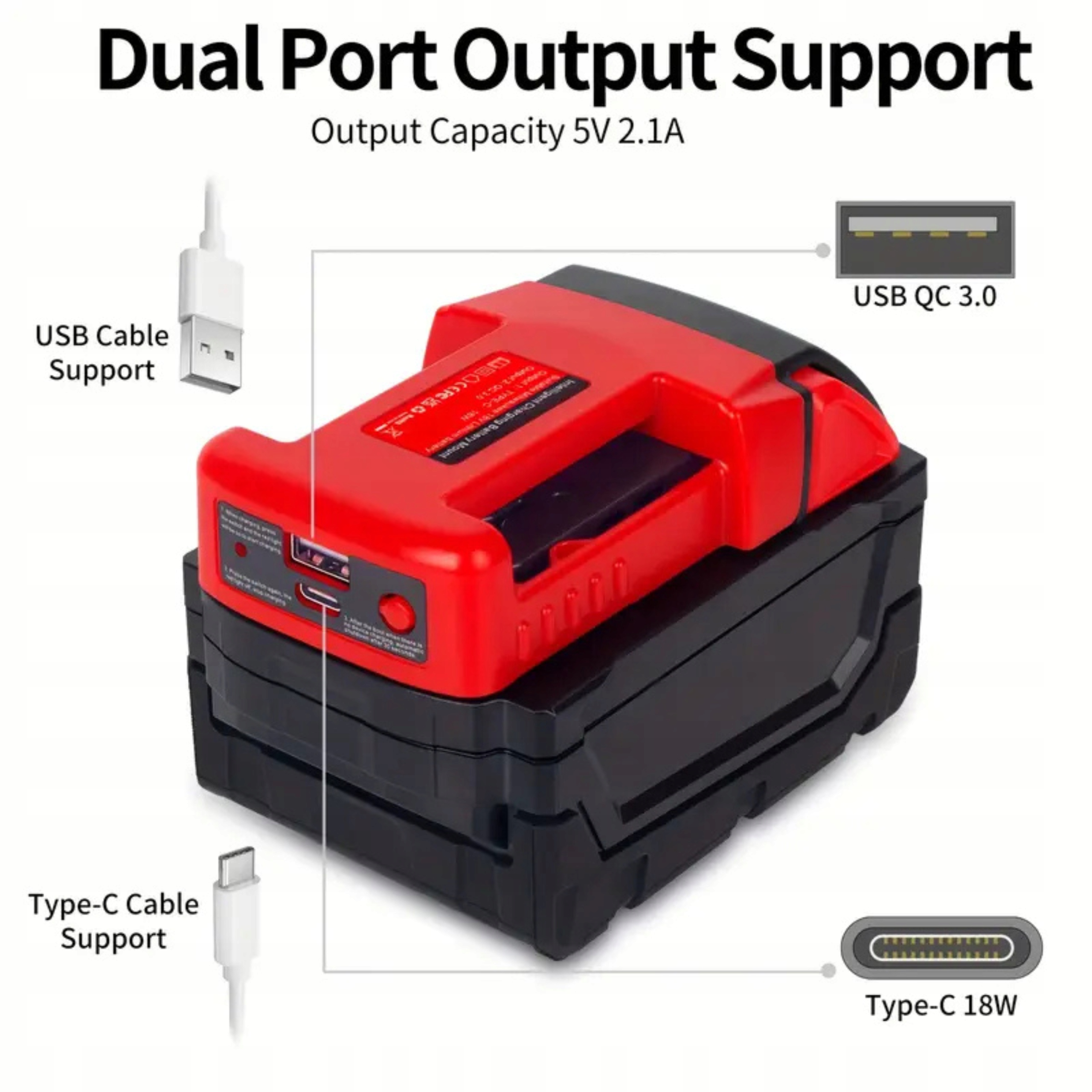 Адаптер зарядного устройства USB-C/A для Milwaukee M18 18V QC 3.0 Батареи