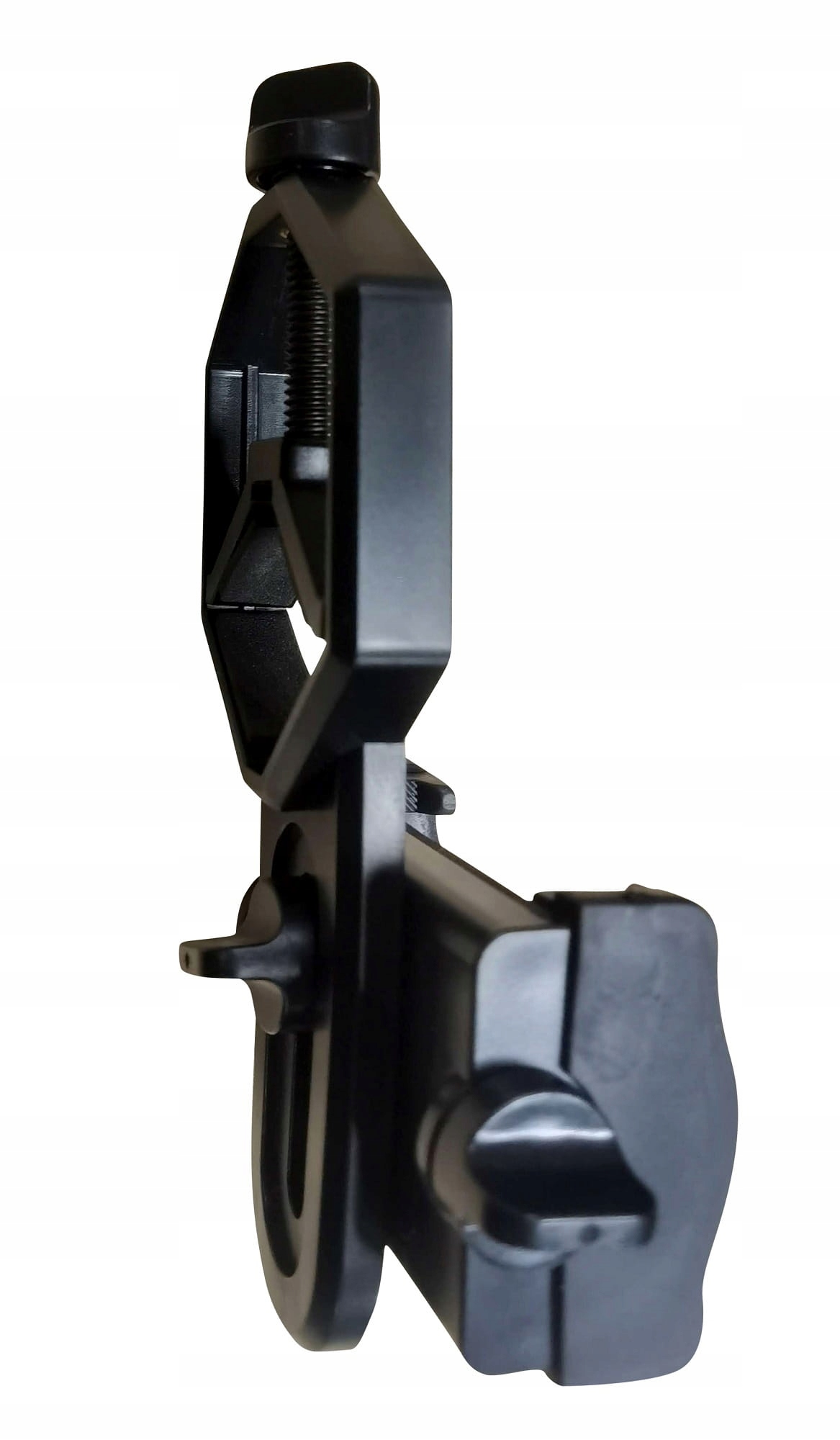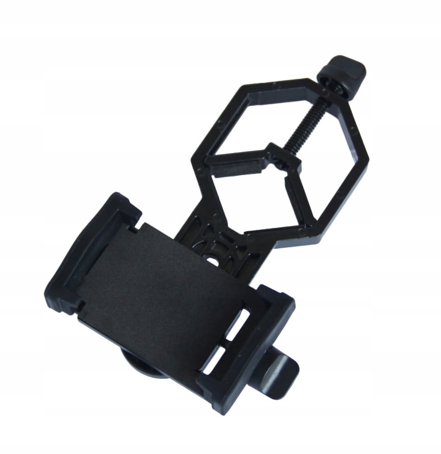Адаптер можно адаптировать к различным смартфонам и оптическим устройствам. Диаметр окуляра оптического прибора должен быть от 25 мм до 48 мм, а ширина смартфона – от 52 мм до 100 мм. Переходник изготовлен из пластика.