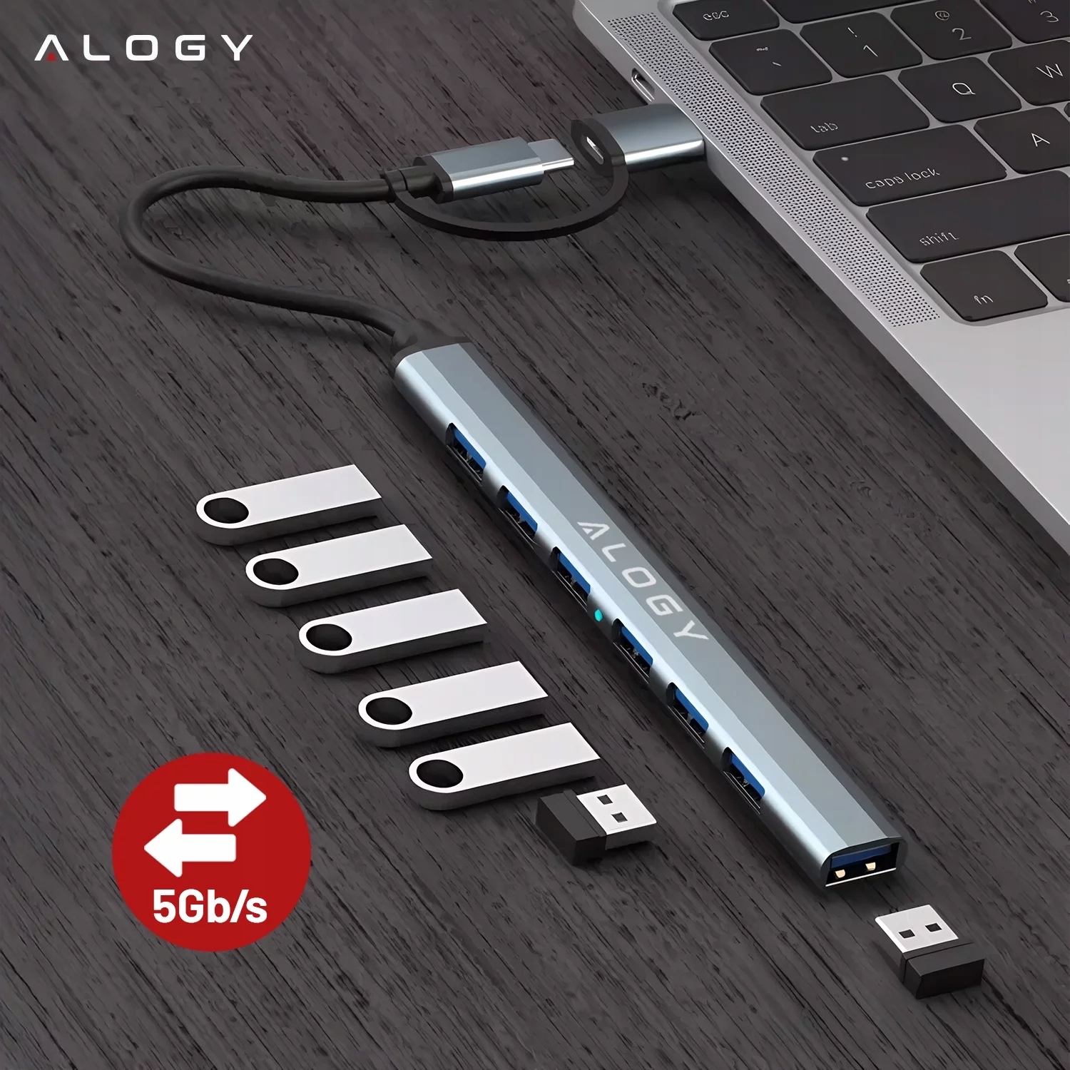 ✅ Концентратор Alogy 7-в-1 предлагает 1 порт USB-A 3.0 со скоростью передачи данных 5 Гбит/с и 6 портов USB-A 2.0 для стандартных устройств. периферийное устройство.