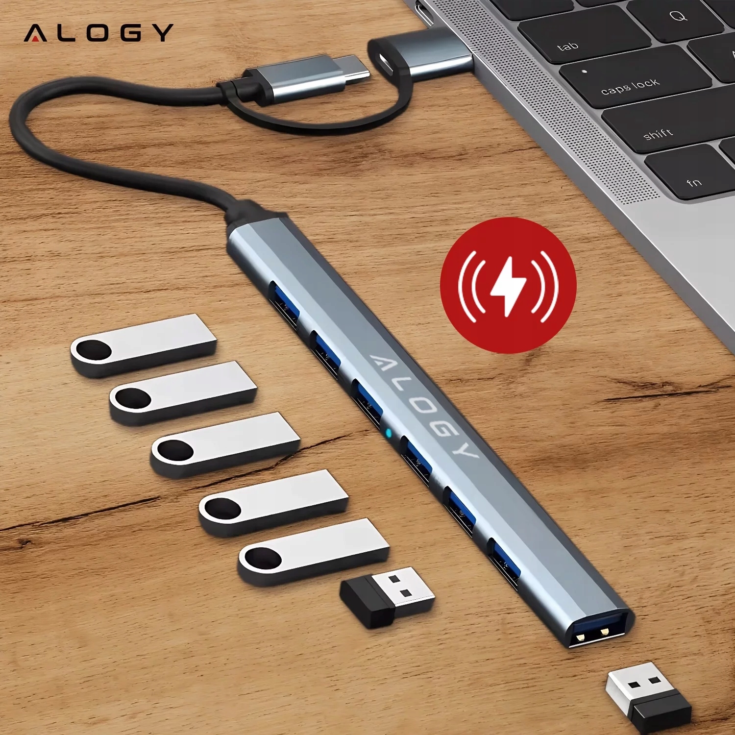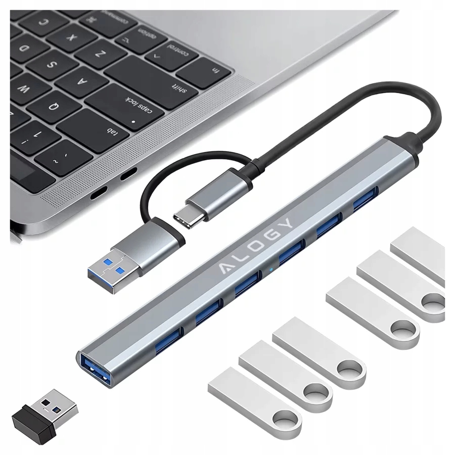 ▶️ Концентратор 7-в-1 USB-C с USB 3.0 на 7x USB-A (1x3.0 + 6x2.0) – Alogy MultiHub™ для ноутбуков