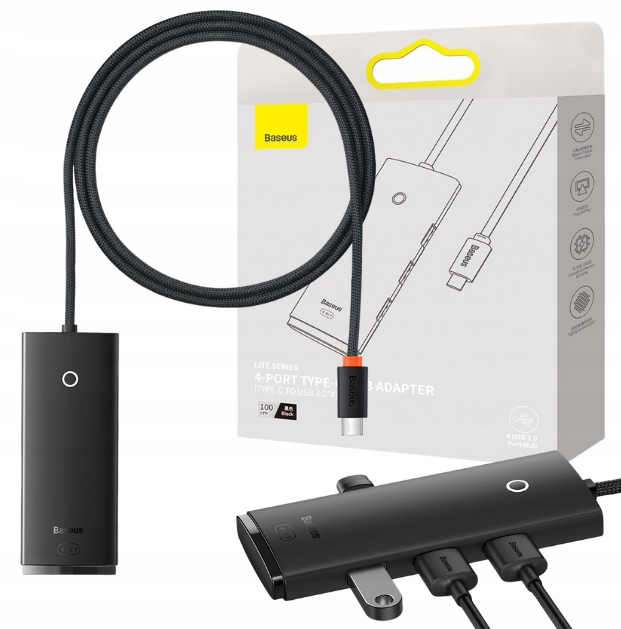 Разветвитель серии Baseus Lite позволяет расширить количество портов USB-C, что особенно полезно в случае устройств с ограниченным их количеством. Благодаря этому решению вы расширите возможности своего ноутбука или компьютера за счет дополнительных 4 портов USB-A 3.0.