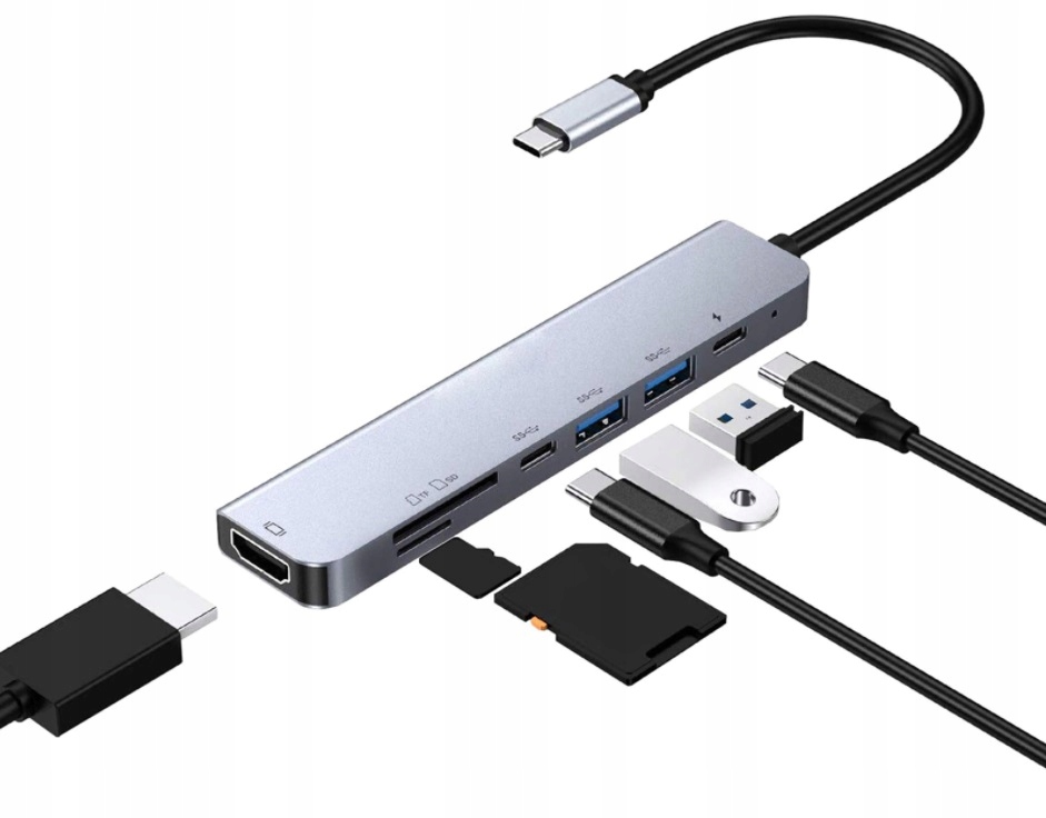HUB 7в1 USB-C с адаптером 4K HDMI 60Гц USB 3.0 SD/TF PD