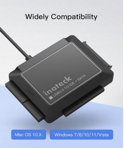 - Универсальный адаптер USB-SATA/IDE: поддерживает 2,5-дюймовые/3,5-дюймовые жесткие диски и твердотельные накопители SATA, Жесткий диск 2,5/3,5 дюйма IDE, SATA DVD-ROM, CD-RW, DVD-RW, DVD+RW, два разъема IDE и один разъем SATA III.