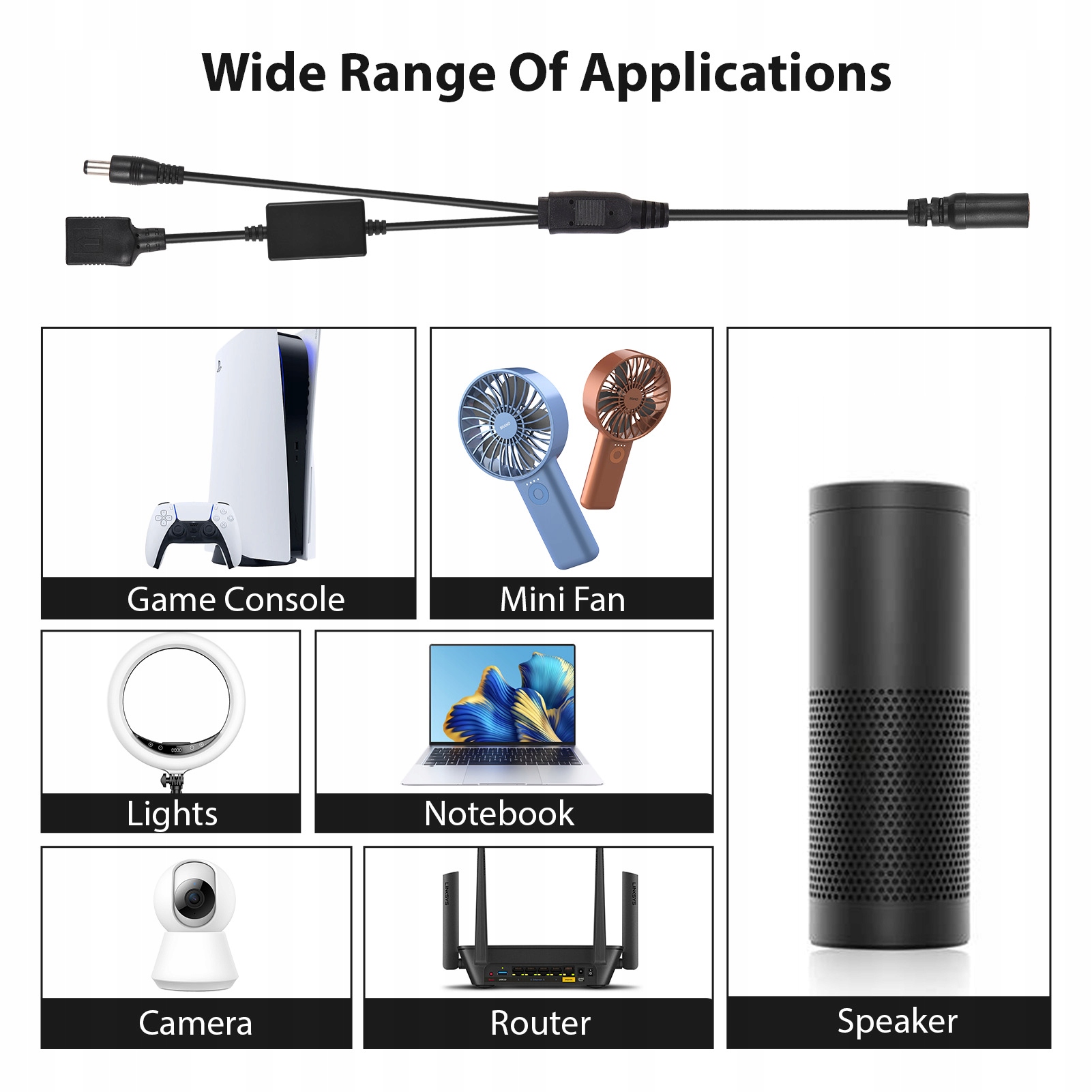 3. Также поддерживает преобразование гнезда 12 В постоянного тока (5,5x2,1 мм) в гнездо USB 5 В.