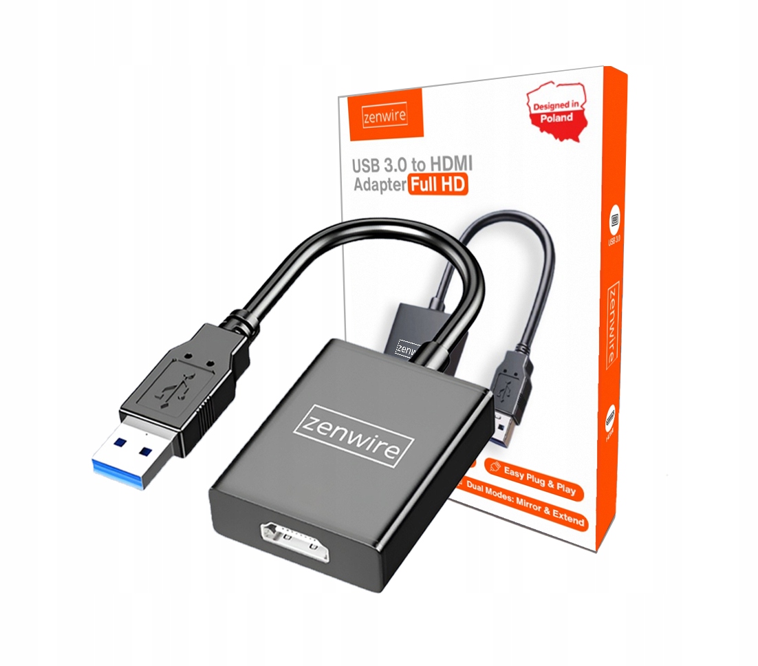 Адаптер Zenwire® Zenwire® позволяет отправлять изображение и звук из USB 3.0 или 2.0 на HDMI с Full HD. Это идеальное решение для людей, которые хотят добавить порт HDMI в ваш ноутбук, ПК или другое устройство, которое не оснащено этим разъемом.