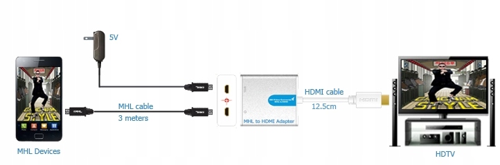 Адаптер оснащен 5-контактным интерфейсом, обеспечивающим поддержку звука и изображения в качестве HDTV до 1080p. Во время разговора Поддерживает функцию RCP, позволяющую управлять телефоном или планшетом с помощью пульта дистанционного управления телевизора. Он позволяет напрямую подключаться к телевизору без использования отдельного кабеля HDMI.