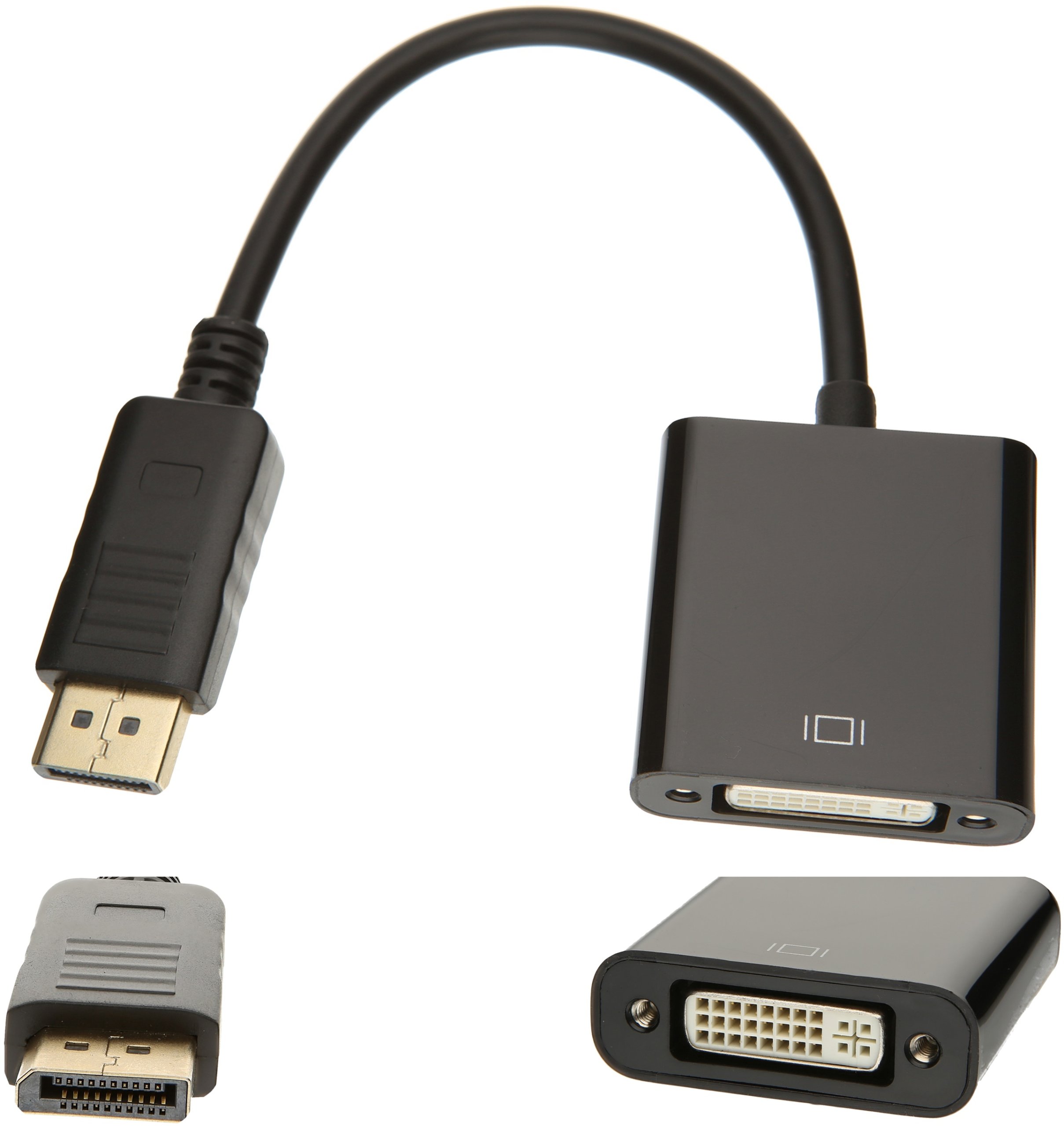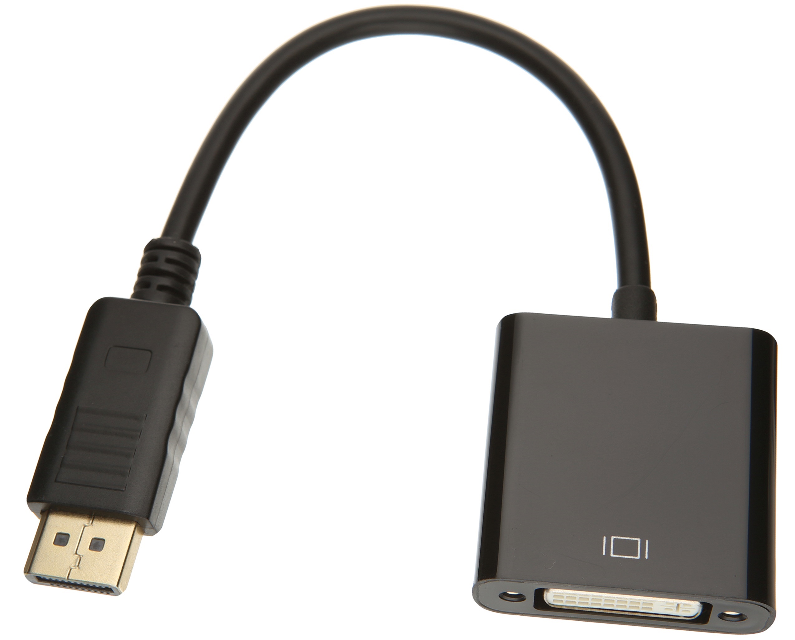 Позволяет подключить компьютер/ноутбук и другие устройства, оснащенные разъемом DISPLAYPORT. к монитору, проектору или телевизору, оснащенному разъемом DVI.