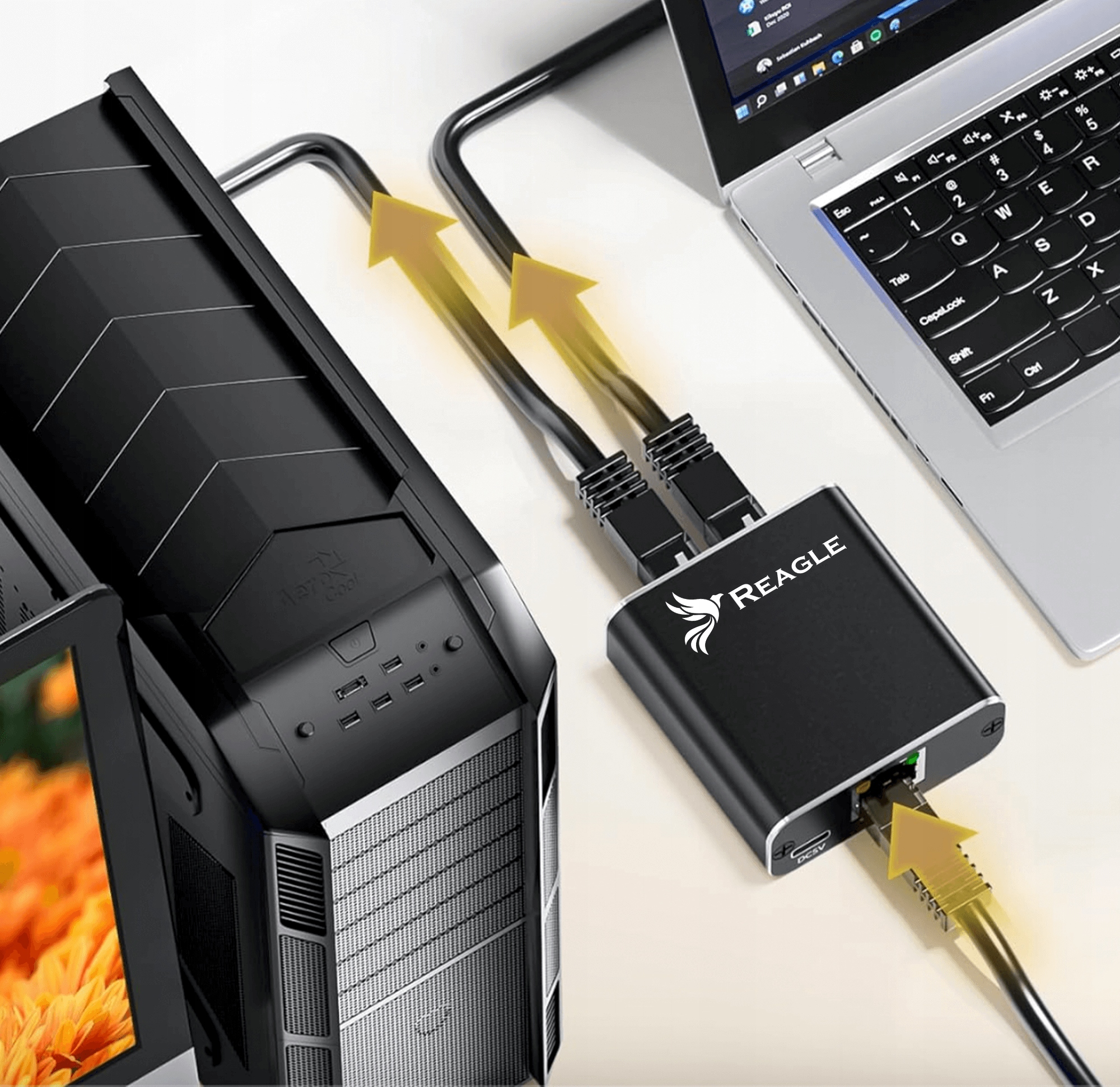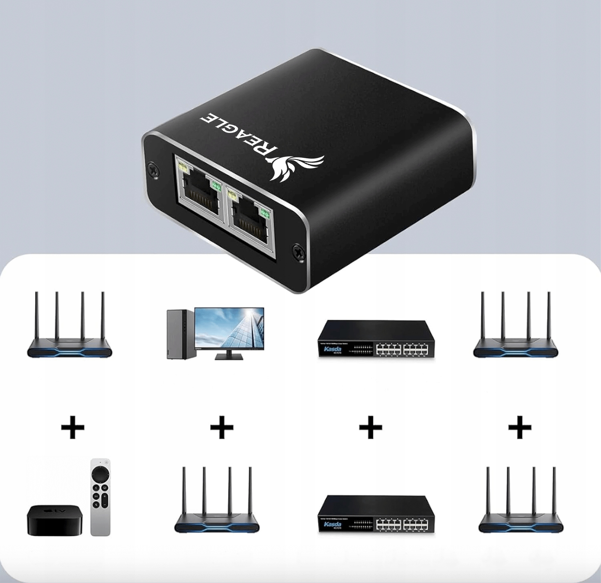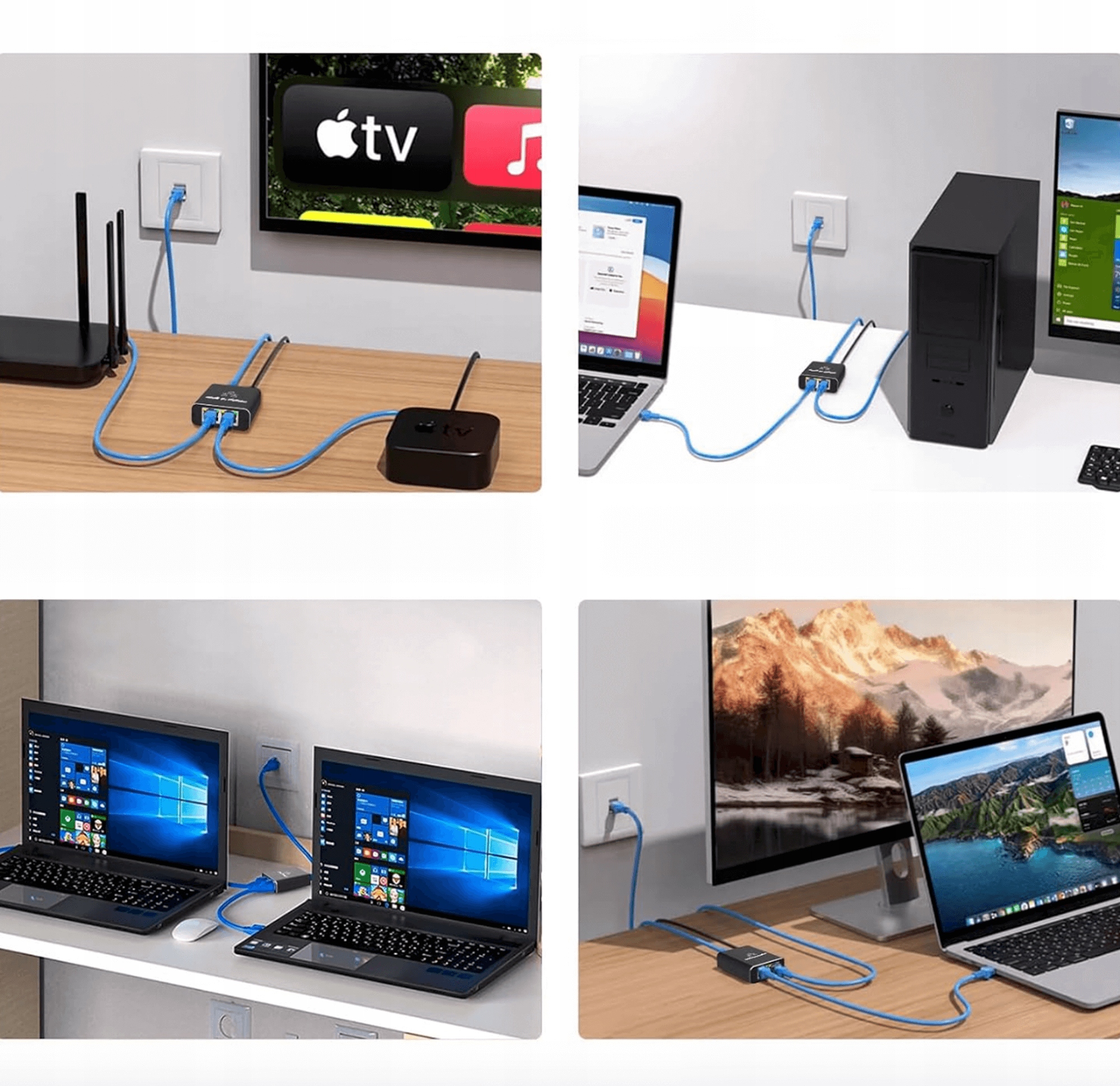 - Позволяет подключите два устройства, например компьютер, телевизор или консоль, к одному источнику, например, маршрутизатору или модему.