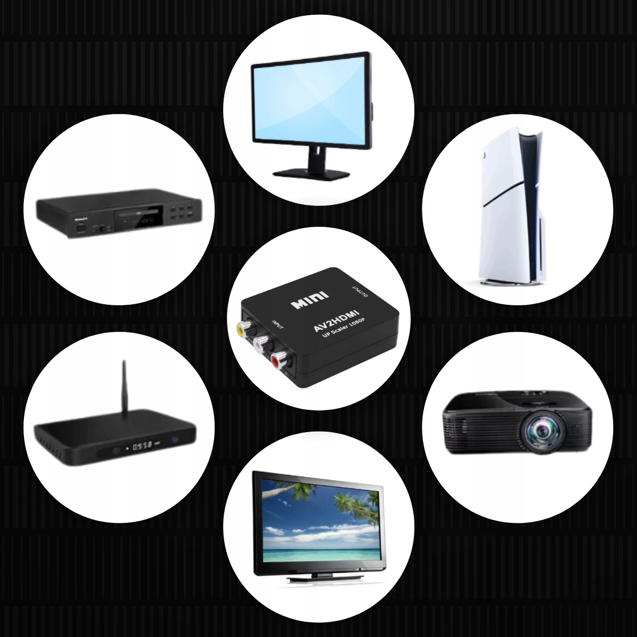 ➡️Преобразование AV в HDMI: преобразует аналоговый AV-сигнал в цифровой HDMI.