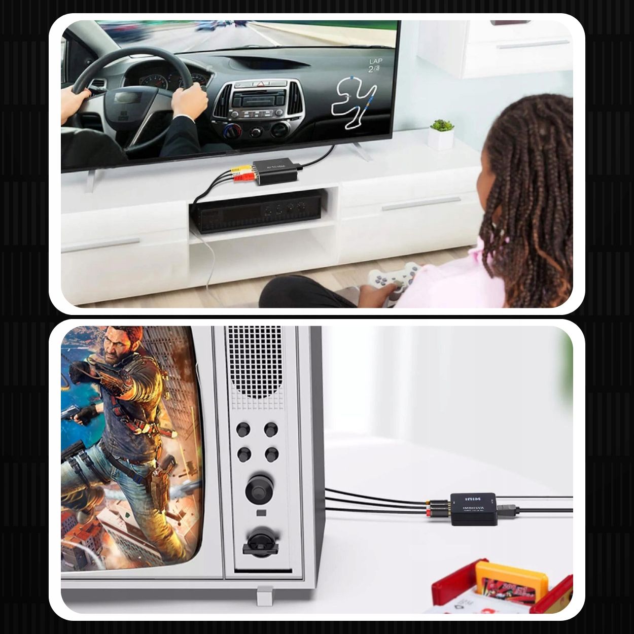 ✔️Универсальность✔️Адаптер позволяет подключать старые устройства с аналоговым AV-сигналом (RCA) для современных экранов HDMI, что позволяет использовать устаревшее оборудование в условиях современных технологий.