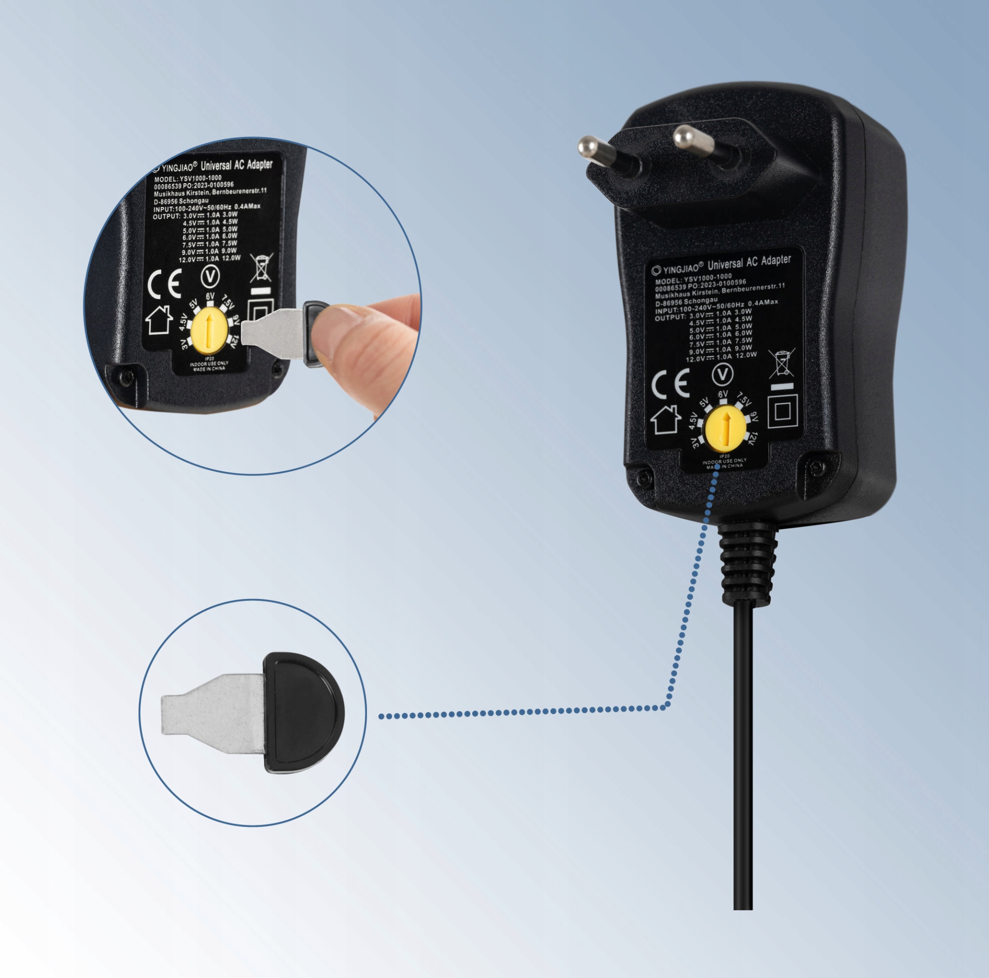 Этот адаптер можно использовать с широким спектром электронных устройств благодаря большому количеству дополнительных напряжений, вилок и полярностей.