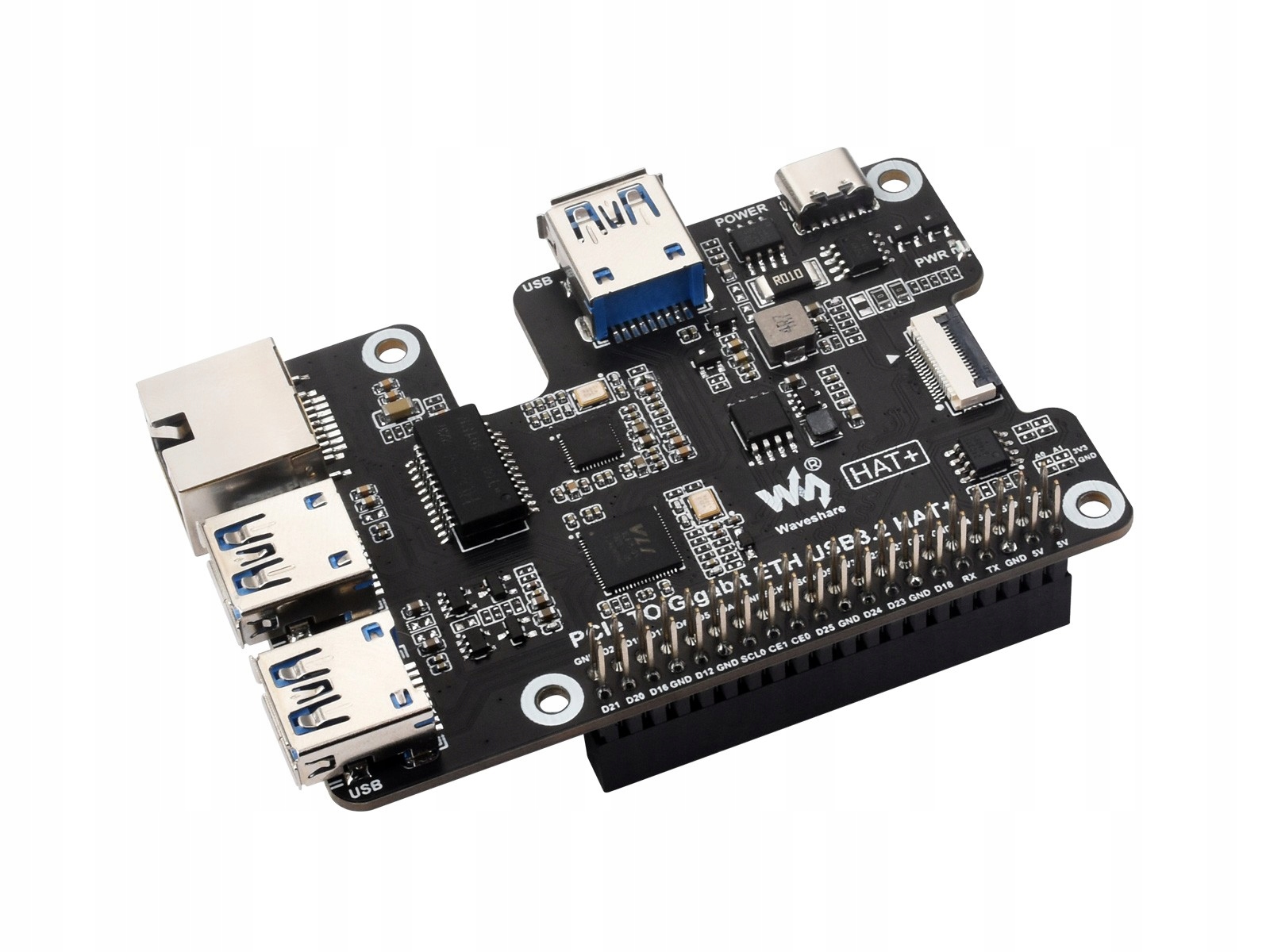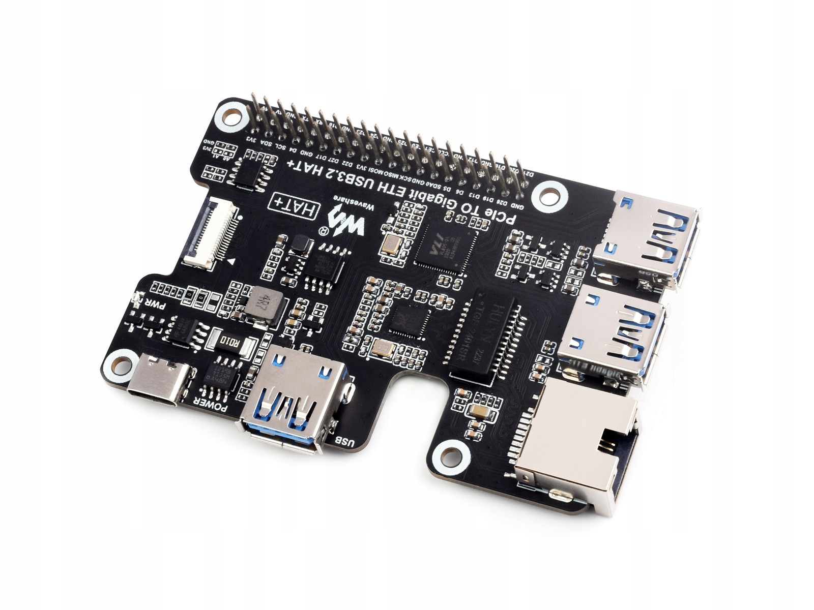 Адаптер Waveshare PCIe — Gigabit ETH USB3.2 HAT+ для Raspberry Pi 5