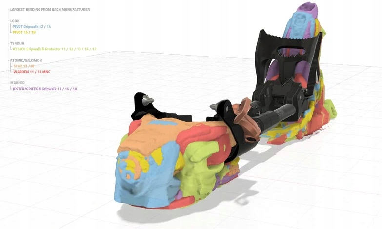 Благодаря регулируемому AFD (анти трения), их можно легко адаптировать к различной толщине обуви, такой как Gripwalk (ISO 9355) или вниз (ISO 5355). Даже в случае туристической подошвы ISO 9523 (MNC) доступен дополнительный набор заменяемых прокладок, который обеспечивает совместимость с различными типами лыжной обуви
