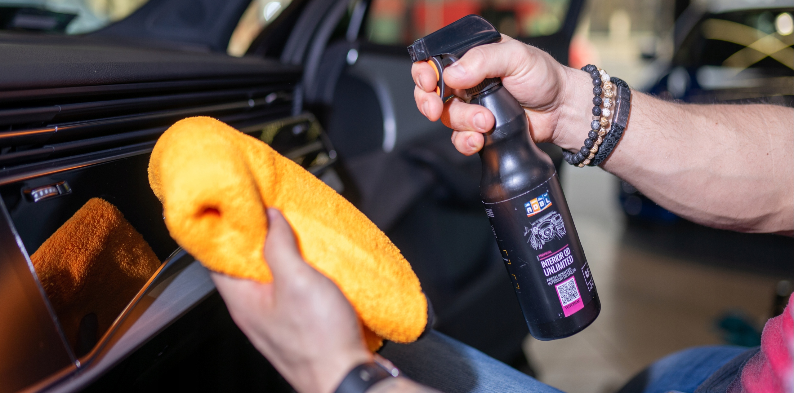 - Нанесите ADBL Glass Cleaner2 на микроволокно ADBL Goofer.