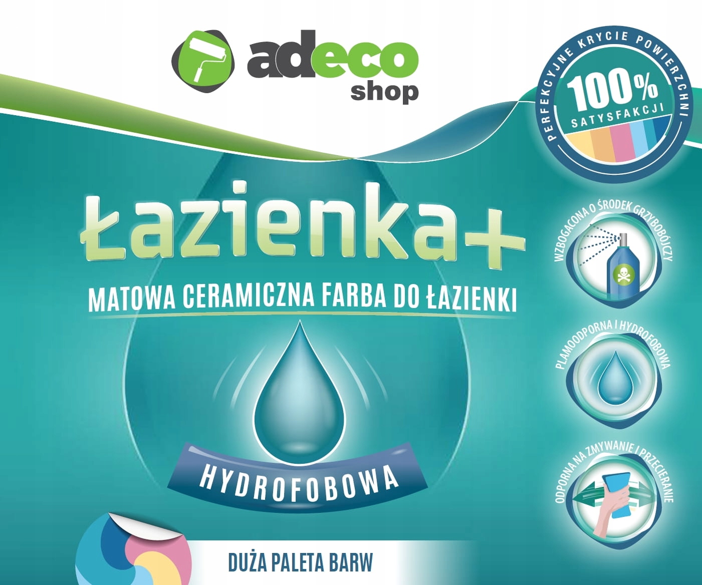 Водоразбавляемая краска, предназначенная для окраски внутренних помещений помещений с повышенной влажностью, например, ванных комнат, бассейнов, саун или прачечных, где требуется высокая эстетика и долговечные и прочные декоративно-защитные покрытия, на типичных строительных основаниях, таких как в качестве новых цементных штукатурок или ранее покрытых красками на основе пластмасс, гипсокартона, обоев. Для использования во влажных помещениях жилых домов и общественных зданий (школ, детских садов, санаториев, религиозных, рекреационных и гостиничных объектов), особенно подверженных загрязнению и поверхностях, требующих дезинфекции. Товар доступен в белом или цветном исполнении по образцу adeco.shop. Создает гибкое, грязеотталкивающее и водонепроницаемое покрытие, стойкость к мокрому истиранию класса 1 согласно PN-EN 13300:2002. Обеспечивает свободную диффузию водяного пара на окрашенных стенах. Благодаря низкому содержанию летучих органических соединений краска «Лазенка+» безопасна для аллергиков и идеально соответствует принципам экологичности и отсутствия отходов бренда adeco.shop