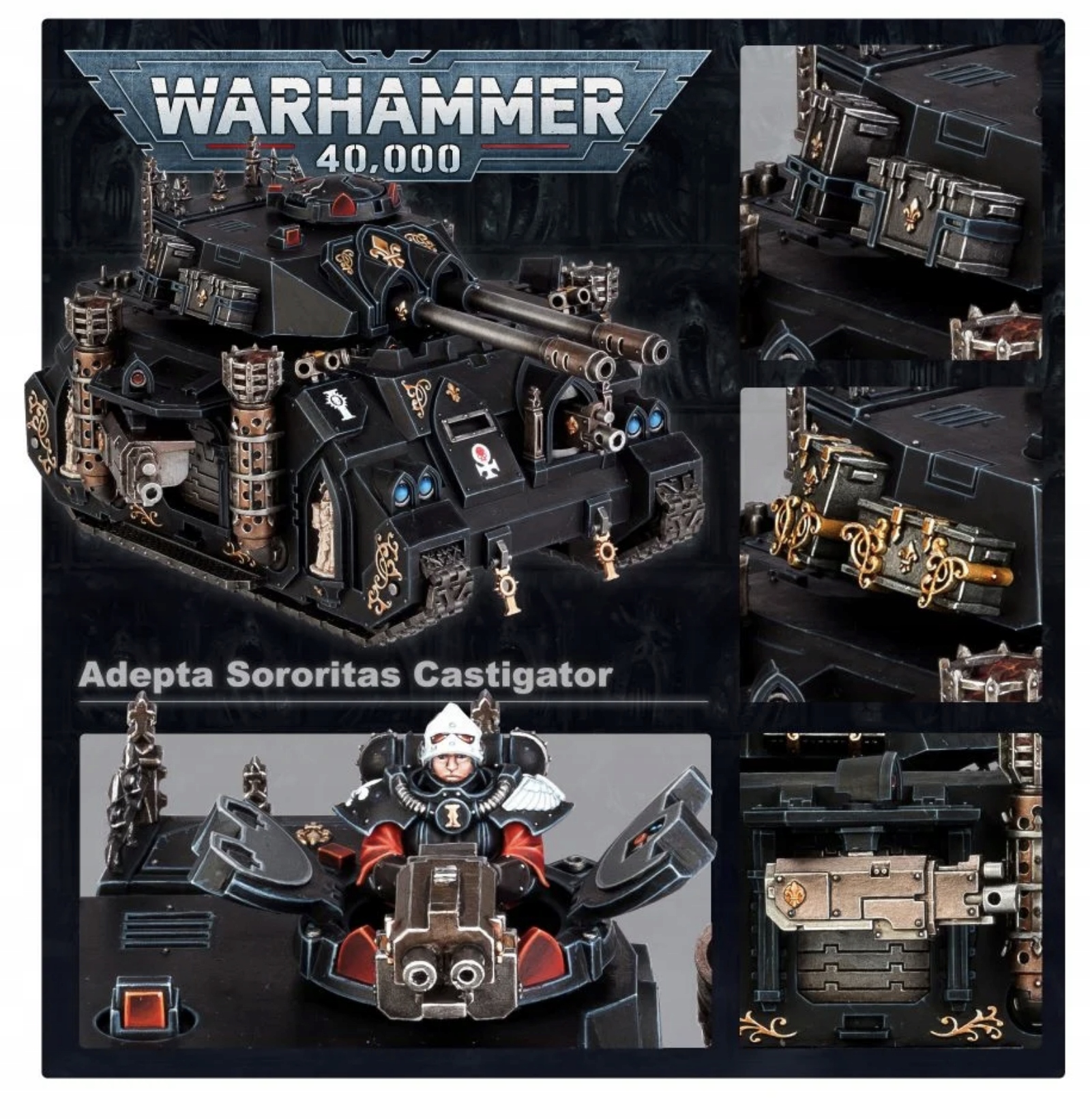 <р> Каратели — мощные боевые танки Адепта Сороритас. Они обеспечивают превосходную огневую поддержку Сестер Битвы с помощью широкого спектра оружия, прорываясь сквозь ряды противника и уничтожая огромные массы вражеской пехоты за считанные секунды. Каратель — это древняя реликвия, покрытая богато украшенными готическими узорами и украшениями, такими как классическая иконография Адепта Сороритас с изображением лилии. Его можно построить с боевой пушкой «Кастигатор» или автопушками «Кастигатор» в качестве основного оружия, а также можно собрать боевые варианты, варианты наводчика и жаровни, которые будут выглядеть так, как будто они горят или потухли.- Продюсер - Мастерская игр