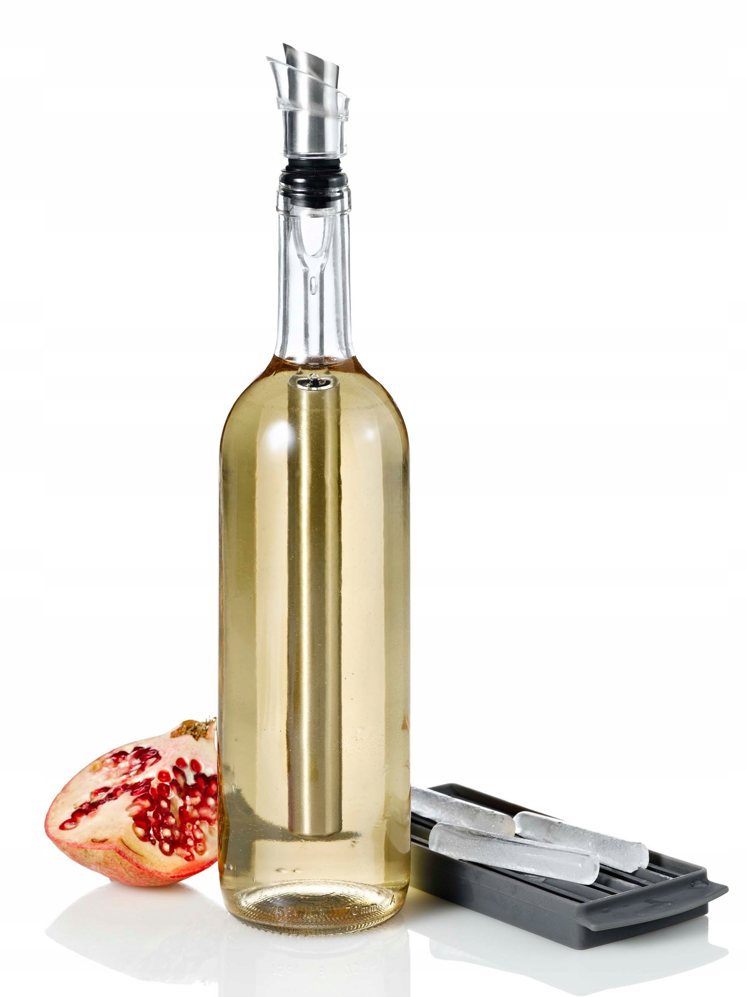 - 3. Кулер многоразовый - мы наполняем льдом, который мы готовим себя в прикрепленной силиконовой форме. В форме вы будете готовить 8 ледниковых палочек, чего достаточно для четырех домиков. Поместите ледяные палочки в металлический кулер в бутылку для вина.