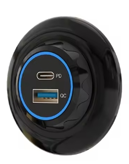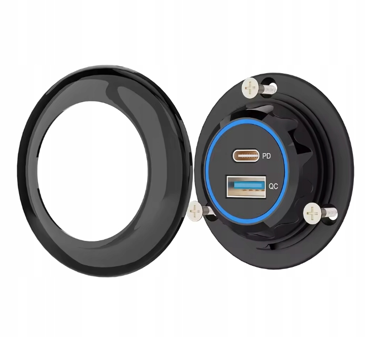 Ładowarka USB PD3.0 QC3.0 montażowa 12V 24V LED Niebieski Okrągła 48W