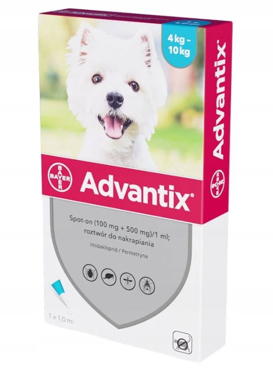 Просматривая «Advantix Spot-On 1,0 мл собак 4-10 кг 1 пипетка», вы можете быть уверены, что данный товар из каталога «Ветеринарні препарати без рецепта» будет доставлен из Польши и проверен на целостность. В цене товара, указанной на сайте, учтена доставка из Польши. Внимание!!! Товары для Евросоюза, согласно законодательству стран Евросоюза, могут отличаться упаковкой или наполнением.