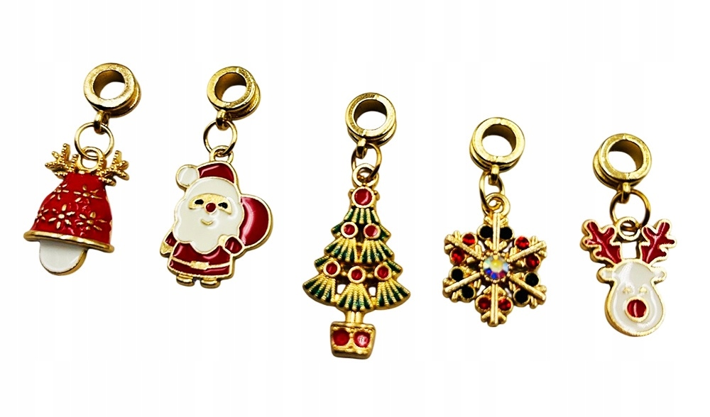 - 22 разных подвески на новогоднюю тематику: Дед Мороз, олень, елка, колокольчик, звезда, подарки и многое другое