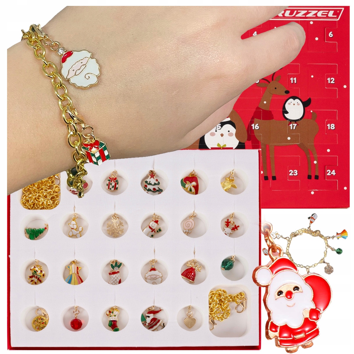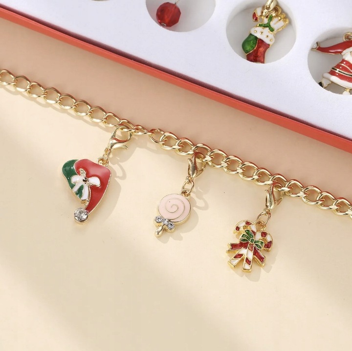 АДВЕНТ-КАЛЕНДАР ДІТЯЧИЙ ДІВЧАТОК 24 елемента БРАСЛЕТ ЛАНЦЮЖОК