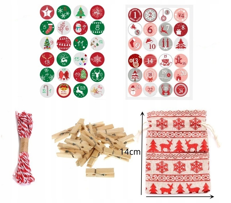 Окончательный вид сумок решаете вы! В комплект входят специальные бирки для каждой сумки, которые вы можете пронумеровать самостоятельно или наклеить на них наклейки. Адвент-календари для заполнения — прекрасная возможность создать что-то оригинальное и адаптировать подарки к потребностям вашего ребенка. Практичные джутовые сумки незаменимы для любителей DIY. Сумки могут быть индивидуально декорированы пайетками или жемчугом и принтом.