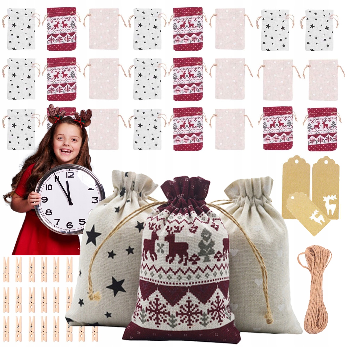 АДВЕНТ-КАЛЕНДАР ДЛЯ ДІТЕЙ DIY СУМКИ ПІДВІСНІ ПОДАРУНКИ НАБІР 24 XXL