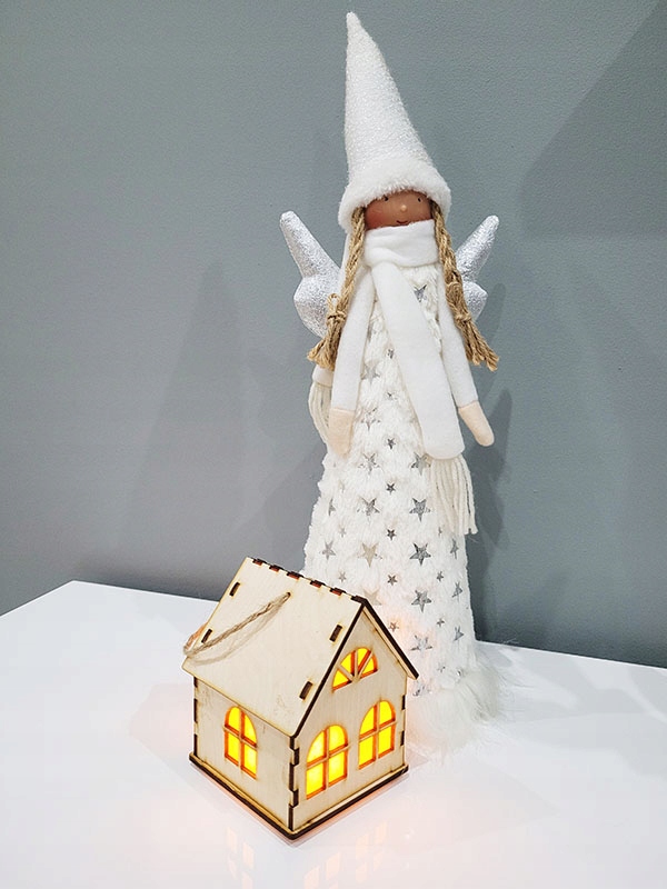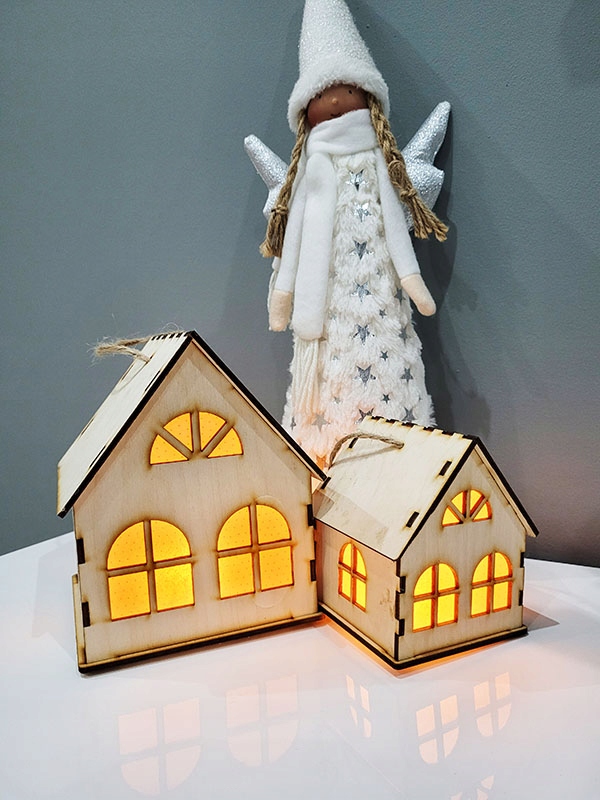 Домик из дерева с прорезанными окнами и светодиодной лампой, имитирующей настоящую свечу. Идеально подходит для роратов. Также он будет идеален в качестве украшения в предрождественский и рождественский период. Фонарь маленький, легкий и удобный, поэтому идеально подходит для маленьких детей. Классическая форма дополнена джутовой веревкой, облегчающей переноску, и белой папиросной бумагой с золотыми точками в окнах. В комплект входит электрическая светодиодная лампа с выключателем ВКЛ/ВЫКЛ. Лампа светится теплым светом. Источник питания — 3 плоские батарейки для часов AG10 G.PIN — в комплекте. Наше предложение включает в себя 2 размера домов. Предложение распространяется на покупку 1 фонаря высотой 10 см (светодиодная лампа добавляется бесплатно). Дом большего размера продается отдельно на другом аукционе. Другие элементы, используемые для презентации продукта (например, ангелы), не включены в коммерческое предложение. Фонарь в форме домика – прекрасное новогоднее украшение, прекрасно подходящее в качестве рождественского подарка. Мы рекомендуем вам приобрести комплект домиков разного размера.