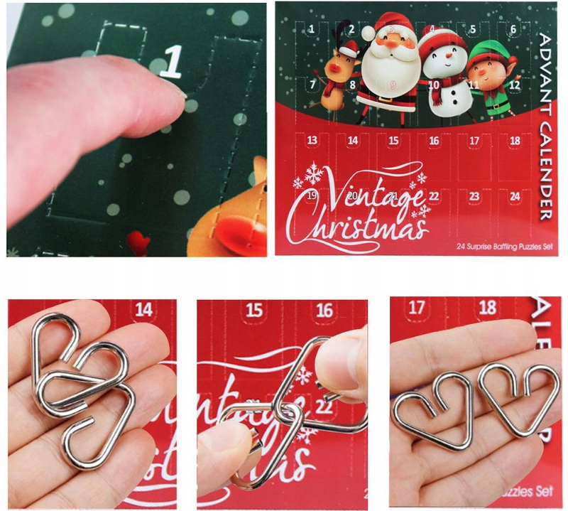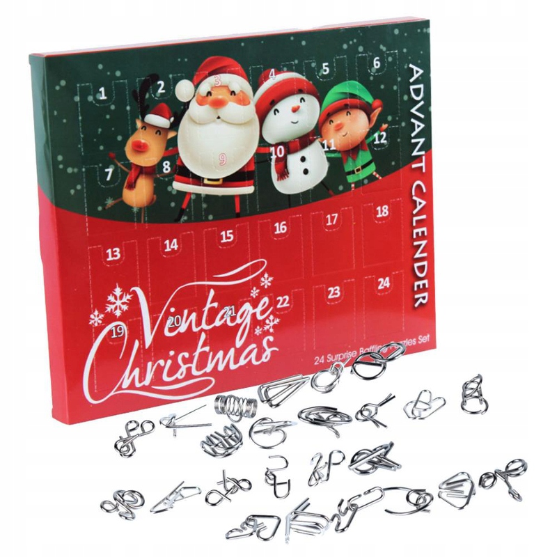 Ł1 АДВЕНТ-КАЛЕНДАРЬ МЕТАЛЛИЧЕСКИЕ ПАЗЗЛЫ 24 ПАЗЗЛЫ ДЛЯ ДЕТЕЙ И ВЗРОСЛЫХ