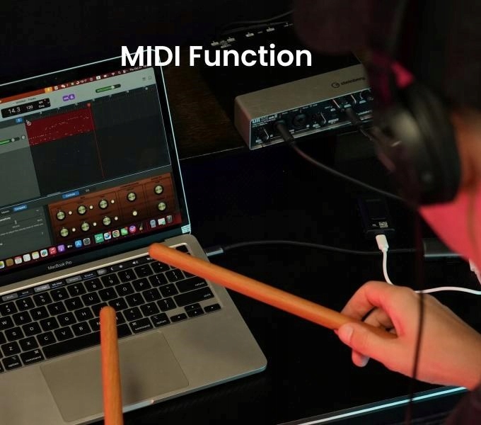 <р>? Компактные размеры по сравнению с традиционными барабанными установками <р>? Они позволяют тренироваться и учиться без шума, используя наушники <р>? Отличается вибрирующей обратной связью! <р>? 128 уровней динамики (сила удара) <р>? Беспроводное подключение к устройствам iOS и Android со сверхмалой задержкой <р>? Адаптер для прямого подключения к наушникам или колонкам <р>? Приложение для изучения и тренировки игры на барабанах, режимы обучения <р>? Богатая библиотека песен для обучения, тренировок и развлечения в приложении <р>? Простота в использовании для начинающих, продвинутых пользователей и всех любителей барабанов <р>? Отличный инструмент для развития координации движений и музыкального слуха <р>? 8 различных пресетов ударных <р>? Дальность действия палок от модуля до 5 метров <р>? Цветная светодиодная индикация на джойстиках для облегчения ориентации <р>? Возможность настройки педалей для двух бас-барабанов <р>? До 18 часов игры без подзарядки <р>? Полная зарядка через порт USB-C за 2 часа (зависит от мощности зарядного устройства)Игровое приложение