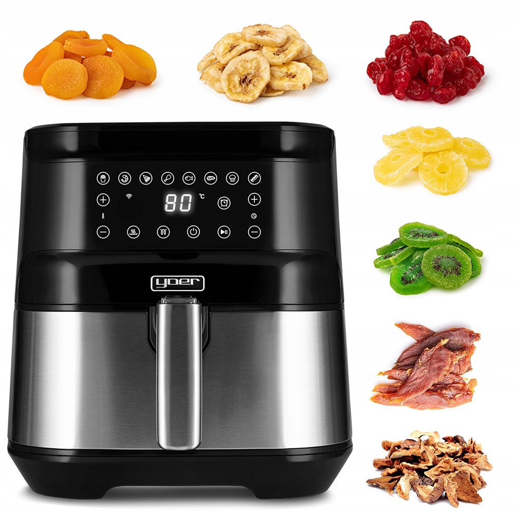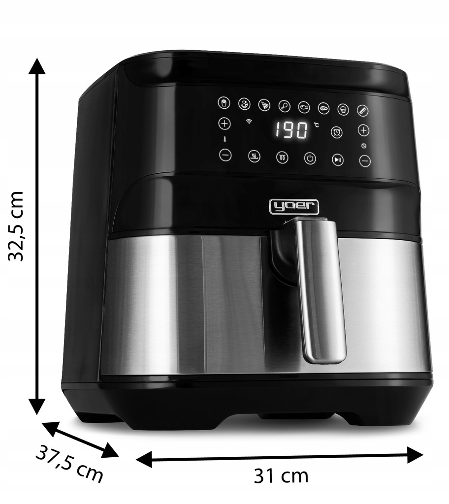 4в1 Фритюрница, духовка, гриль, сушилка ⭐ Мощность 1700 Вт ⭐ Таймер на 12 часов ⭐ 10 программ ⭐ Решетка для гриля ⭐ Разделитель чаши ⭐ Чаша 6 л ⭐ Сенсорная панель ⭐ Диапазон температур 80 - 204°C ⭐ b>< б> Время работы до 60 мин ⭐ Wi-Fi ⭐ Конвекция ⭐ Рецепты в приложении Yoer ⭐ Сертификат CE ⭐