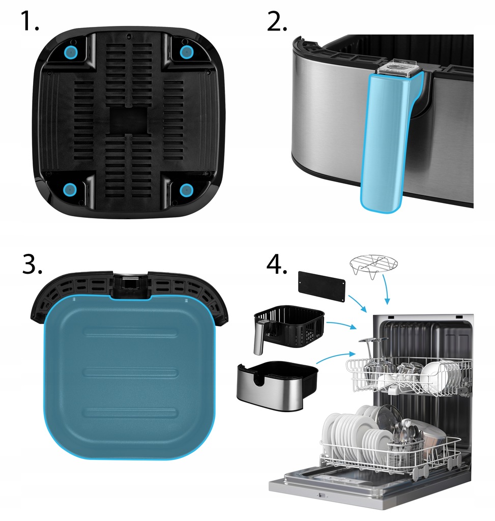1️⃣ Нескользящие ножки - обеспечивают устойчивость фритюрницы и предотвращают ее перемещение