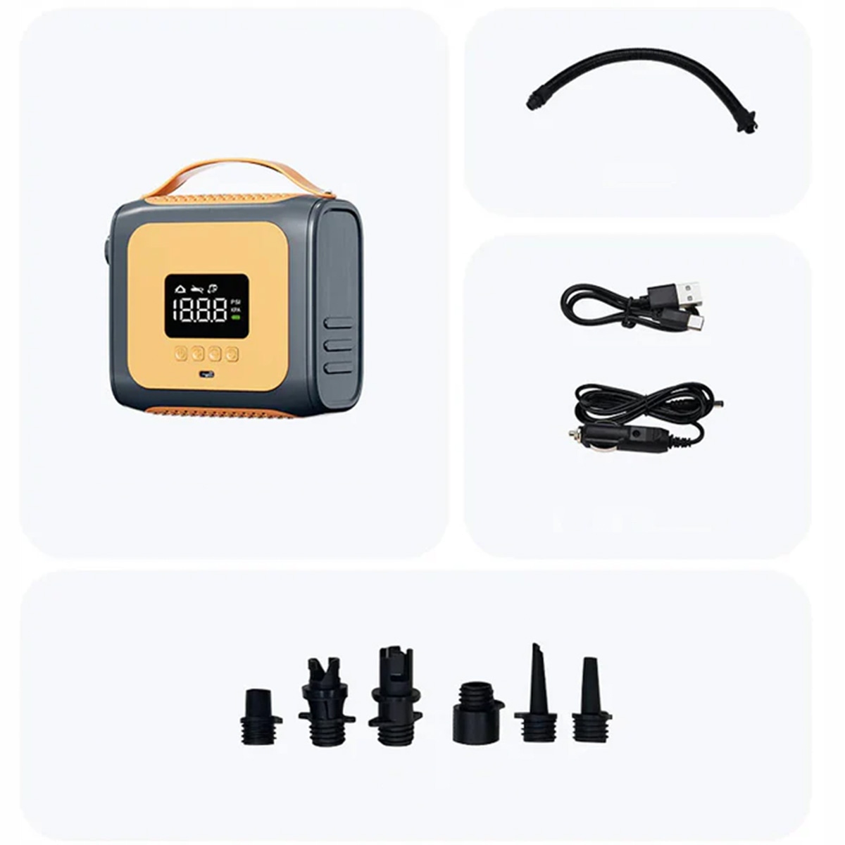 Насос предлагает различные настройки давления, что позволяет точно соответствовать конкретным приложениям, таким как раздувание плат SUP, воздушные змеи, воздушные палатки или другое туристическое оборудование.