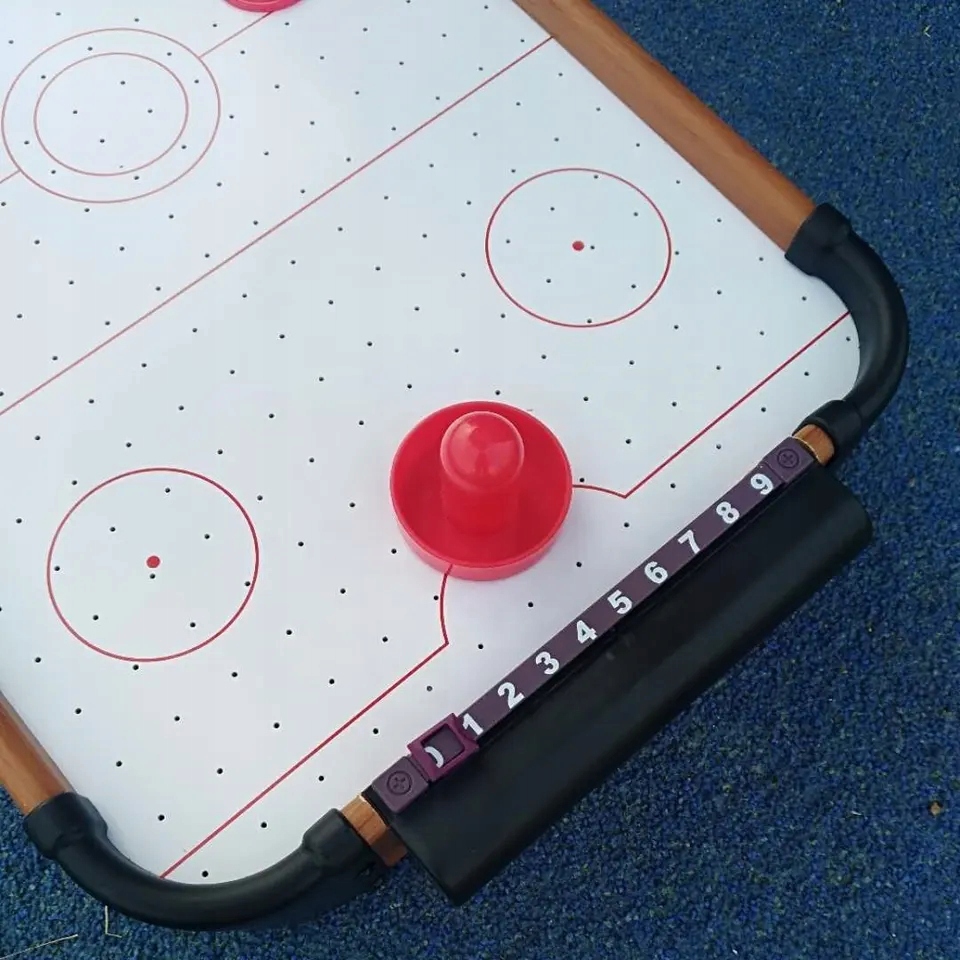 Для игры используется специально подготовленный стол. Поверхность стола покрыта отверстиями, через которые продувается воздух. При этом создается воздушная подушка, по которой шайба скользит, не касаясь земли.
