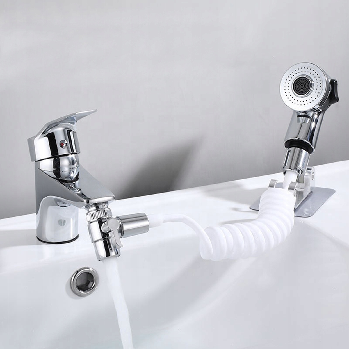 Серебристый душевой набор, состоящий из съемной душевой насадки на гибком шланге. Просто подключите комплект к классическому смесителю для ванны и установите клапан в подходящее положение, чтобы пользоваться душем или смесителем. В комплект также входит специальный держатель для крепления и подвешивания аккумулятора на стену. В трубке реализована функция классического душа и регулярной струи воды.