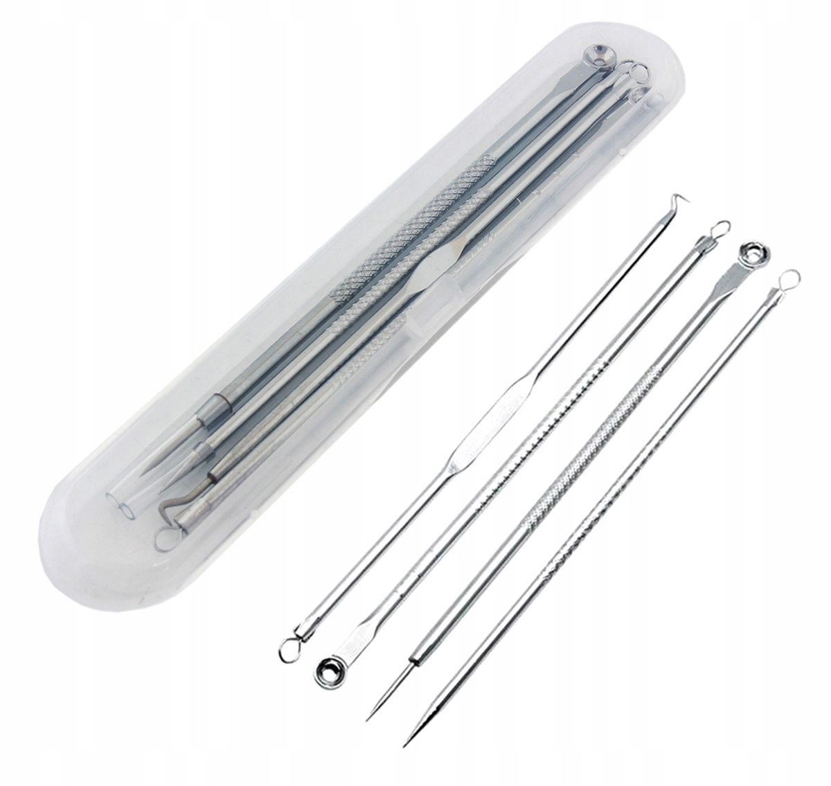 Набор из 4 чайных ложек для безопасного удаления черных точек, черных точек и прыщей! Профессиональные ложки-петли предназначены для борьбы с черными точками и другими загрязнениями на лице. Они идеально подходят для удаления прыщей из труднодоступных мест!