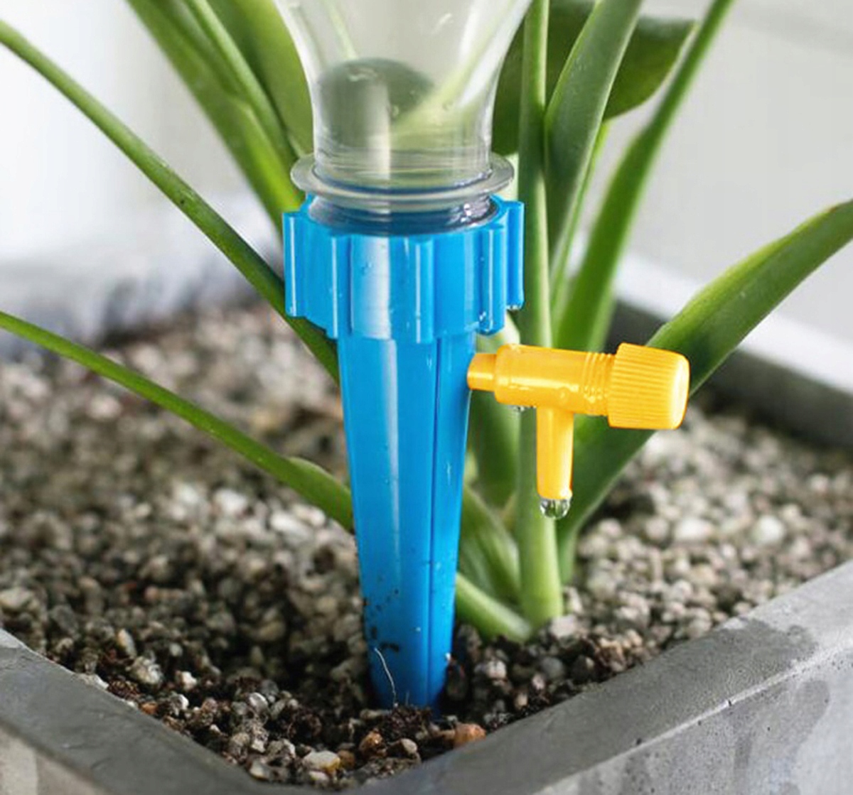 Новая высококачественная поилка для горшечных растений, привинченная к стандартной резьбе бутылки. Это обеспечивает адекватный доступ растительности к источнику воды даже во время длительного отсутствия. Оросительное устройство имеет дополнительный кран и уплотнение для регулирования расхода воды.