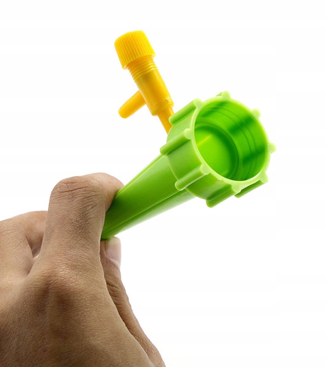 Для обеспечения стока воды достаточно открутить кран в нужное положение. Проделайте отверстие в пластиковой бутылке, наполненной водой, затем прикрутите ее к резьбе (широкая часть ирригатора) и воткните кончик в землю внутри горшка.