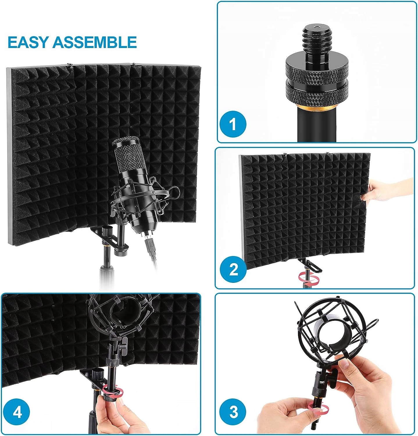 Различное использование: Этот тип изолирующего кожуха записывающего микрофона имеет несколько различных применений, например, его можно прикрепить к столу. или стол, или вы можете просто установить изолирующую крышку микрофона прямо на подставку для микрофона.