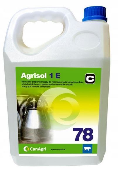 Agrisol 1 E - нейтральный моющий препарат для ручной мойки молочных бидонов, охладителей и других частей доильного аппарата в контакт с молоком. Предназначен для очистки поверхностей, контактирующих с пищевыми продуктами.