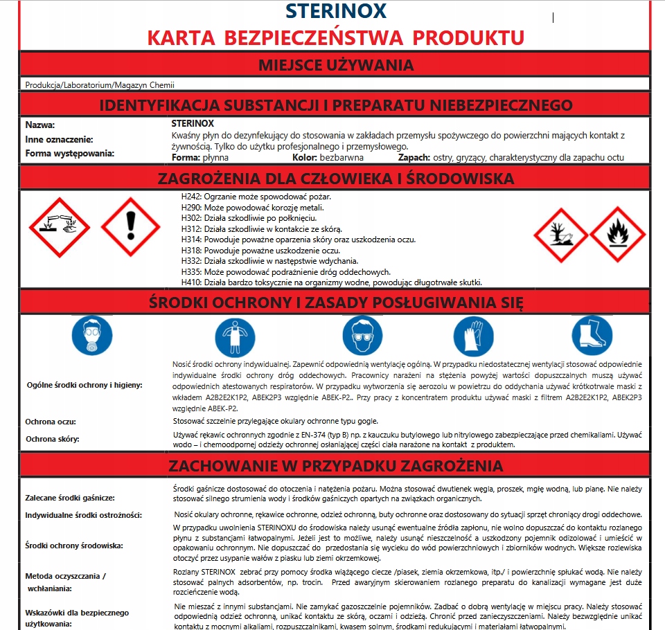 Агрисол Н (Sterinox) - кислотное, непенящееся, высококонцентрированное дезинфицирующее средство на основе 15% надуксусной кислоты.