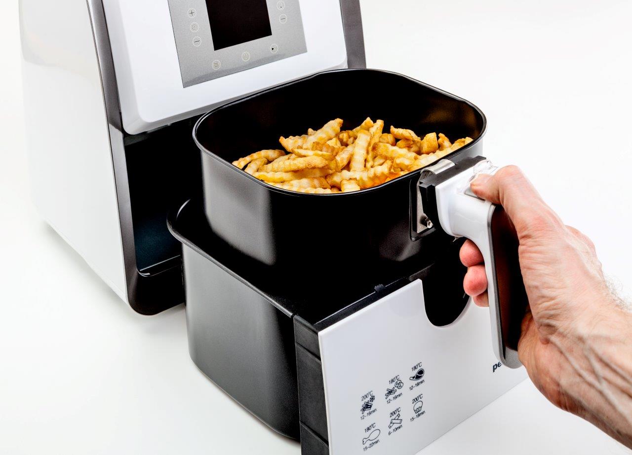 Fryktrozetless Frykitnik позволяет вам более здорово готовить ваши любимые блюда и закуски. Устройство использует горячий воздух в сочетании с быстрой циркуляцией, позволяя готовить много вкусных блюд здоровым, быстрым и простым способом. Продукты нагреваются со всех сторон одновременно, и для большинства блюд нет необходимости добавлять масло. Фрирование происходит в горячем воздухе, что означает менее неприятные запахи и дым, чем во время традиционной жарки. Устройство проще в чистоте, безопасно и экономично, поэтому вы можете использовать его каждый день.