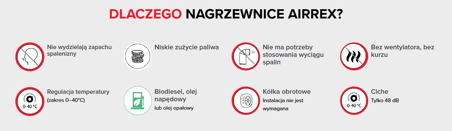 Инфракрасный обогреватель Airrex AH-200i производит безопасное инфракрасное излучение. Тепло, вырабатываемое инфракрасным обогревателем, равномерно распределяется по отапливаемому помещению, поэтому дополнительный вентилятор не требуется. Эффект нагрева быстрый, а запатентованная масляная горелка и система выхлопа используют практически 100% энергии, содержащейся в топливе.