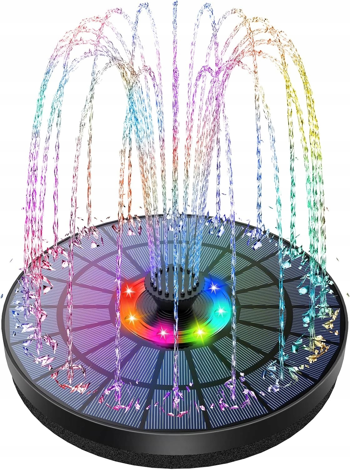 【8 разноцветных светодиодных фонарей】Фонтан на солнечной батарее имеет 8 встроенных светодиодных фонарей, каждый из которых имеет функцию автоматического переключения циклов для отображения различных красочных узоров воды. Ночью фонтан работает автоматически и загорается, когда система обнаружения света определяет интенсивность света в ночное время. Подходит для птичьих прудов, аквариумов, небольших прудов, бассейнов и украшения сада. Разнообразный солнечный насос мощностью 5,5 Вт - Солнечный фонтан AISITIN мощностью 5,5 Вт с подсветкой и аккумулятором использует технологически продвинутую солнечную систему, которая сильно и эффективно поглощает солнечную энергию, обеспечивая очень долгую работу. Он работает автоматически под прямыми солнечными лучами и занимает всего 3 секунды при помещении в воду. Простой и эффективный в использовании, он добавит немного веселья в ваш сад.